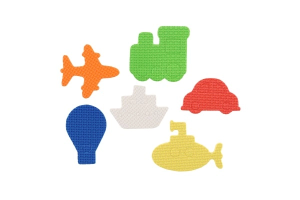 Komplektis on lennuk, rong, laev, auto, kuumõhupall ja allveelaev – ideaalne kooslus temaatilisteks mängudeks ja lugudeks vannis.