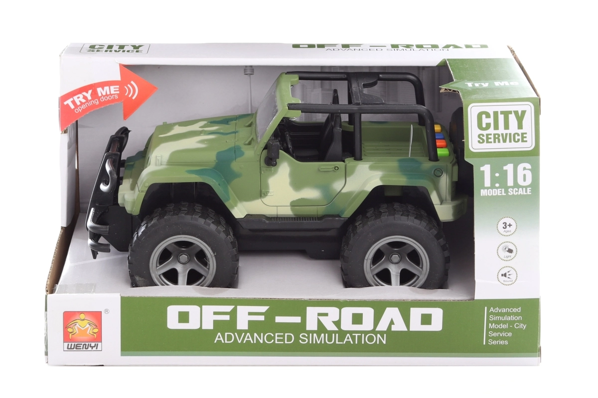 Lõbus patareidega jeep 3+ aastastele lastele pakub põnevat mängu ehtsate efektidega. See pakub 4 autoheli, vastupidavat plastkorpust ja kompaktseid mõõtmeid lihtsaks kandmiseks ja hoiustamiseks.