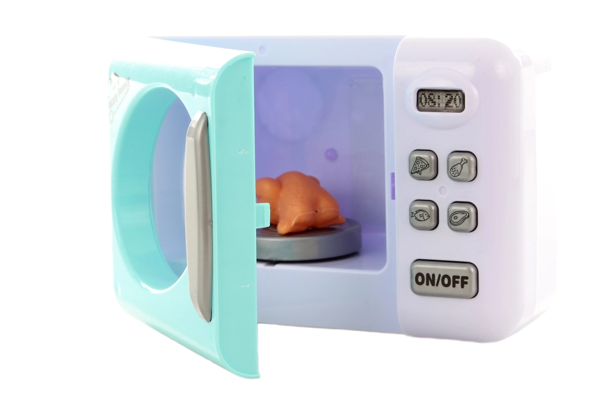 Lõbus patareidel laste mikrolaineahi väikestele kokkadele alates 3. eluaastast. Sisselülitamisel hakkab toit taldrikul pöörlema ja ahi süttib valgusega, muutes kokkamismängu veelgi realistlikumaks. Komplektis on plastist kana, et saaks kohe mängima hakata ja fantaasiat arendada.