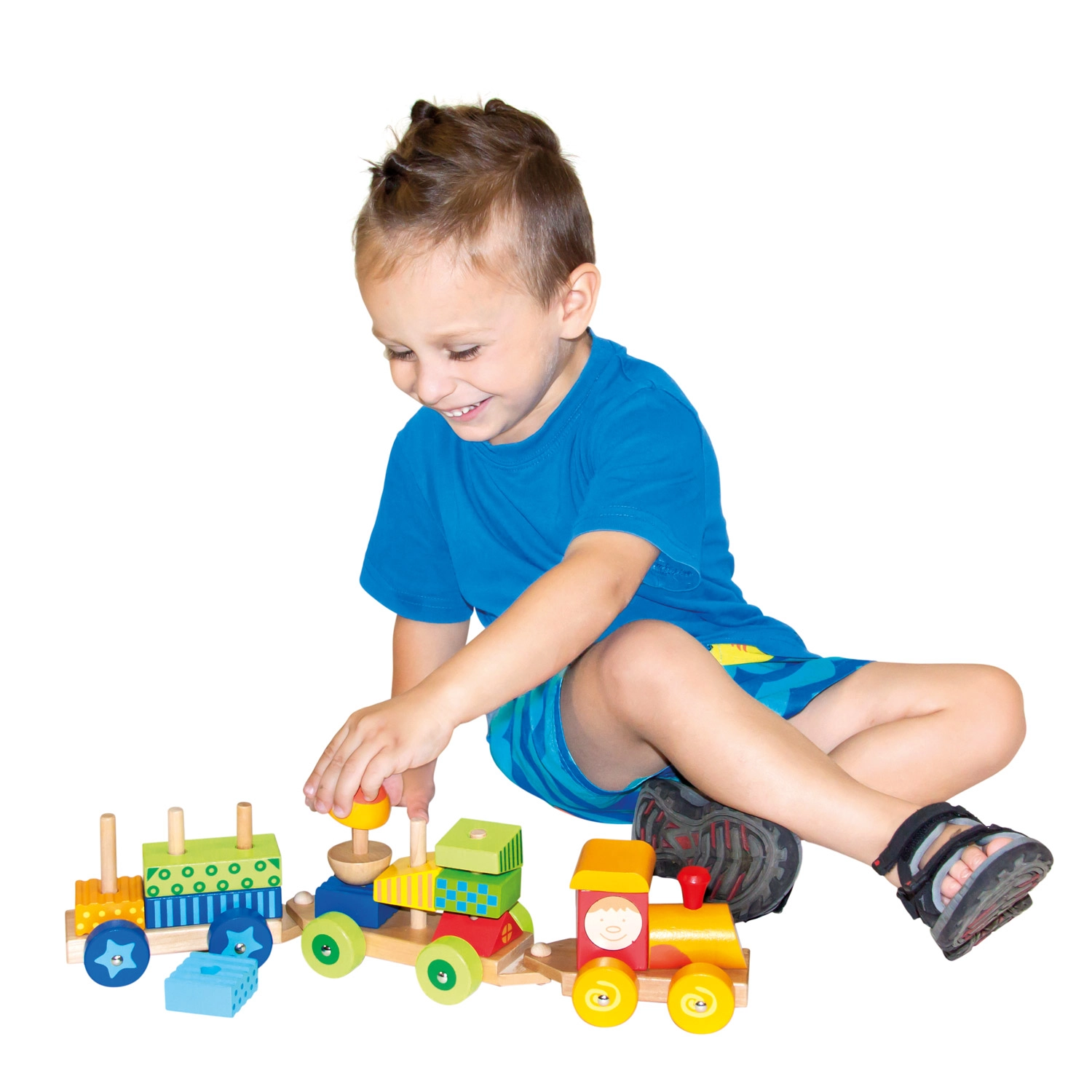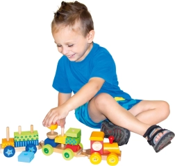 Multifunktsionaalne puidust rong on mitte ainult järelveetav mänguasi, vaid ka ehituskomplekt, mis aitab lastel arendada loovust. Komplekti kuuluvad kolm alusraami ja 18 erinevat klotsi, mida saab vastavalt fantaasiale kokku laduda.