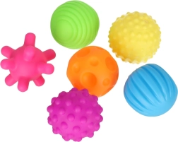 Igal pallil on ainulaadne pind (väikesed ja suured nupsud, sooned, vagud, „siil“), mis toetab lapse kompimistaju ja uudishimu.