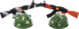 Lõbus lastekomplekt väikestele sõduritele sisaldab ragiseva efektiga plastist automaati pikkusega umbes 53 cm ja sõjaväekiivrit siseläbimõõduga umbes 18,5 cm. Suurepärane valik sõjamängudeks, kujutlusvõime arendamiseks ja aktiivseteks seiklusteks. Sobib lastele alates 3. eluaastast.