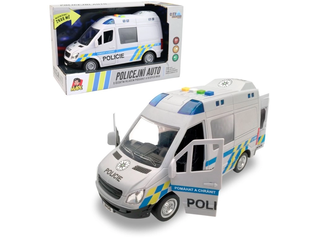Realistlik politsei kaubik väikestele päästjatele pakub tšehhikeelseid meeskonna ja dispetšeri teateid, toimivat sinist vilkurit ja hõõrdejõul töötavat veosüsteemi. Avanevad uksed ja detailne viimistlus mõõtkavas 1:16 tagavad palju mängurõõmu. Auto pikkus on 21 cm, toide 3× 1,5 V AG13. Sobib alates 3. eluaastast.