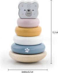 Puidust hariv püramiid jääkaru motiiviga on ideaalne mänguasi kõige pisematele. Püramiidil on kuus rõngast eri suuruste ja värvidega, sealhulgas üks peamine rõngas karu peaga. Tänu vastupidavale puidust konstruktsioonile on mänguasi mitte ainult ohutu, vaid ka kauakestev.