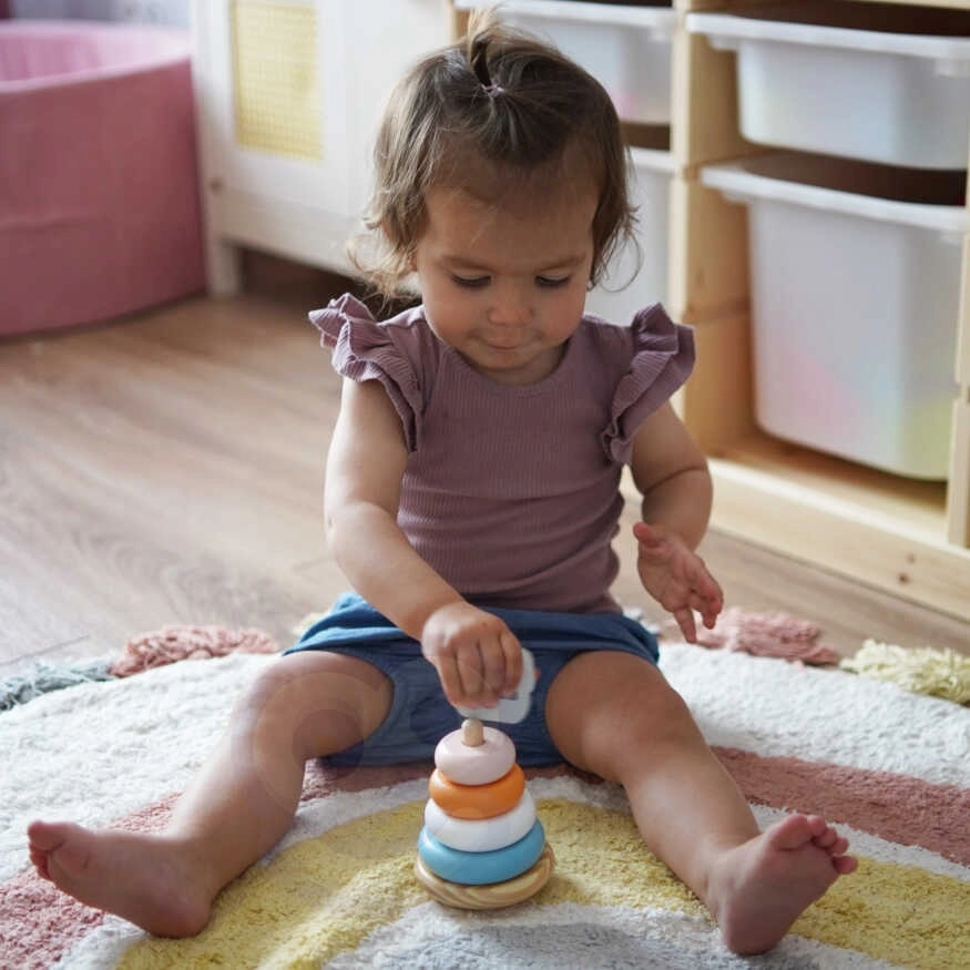 Rõngaste asetamine alusele pakub lastele rõõmu ning arendab nende koordineerimisoskusi ja loogilist mõtlemist. Lapsed õpivad ka värve eristama ja töötama erinevate kujunditega.