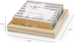 Iga klotsi külg kuulub erinevale motiivile. Lapsed naudivad karu, koala, rebase, siili, sebra ja teiste loomade kokkupanemist ning harjutavad samal ajal loogilist mõtlemist.