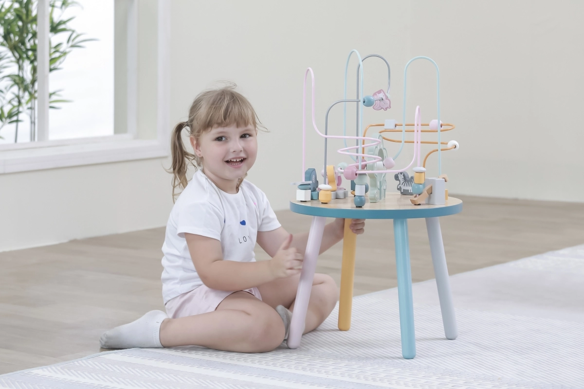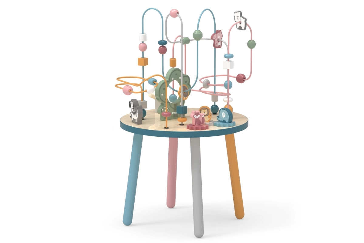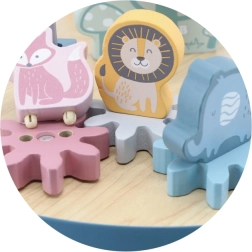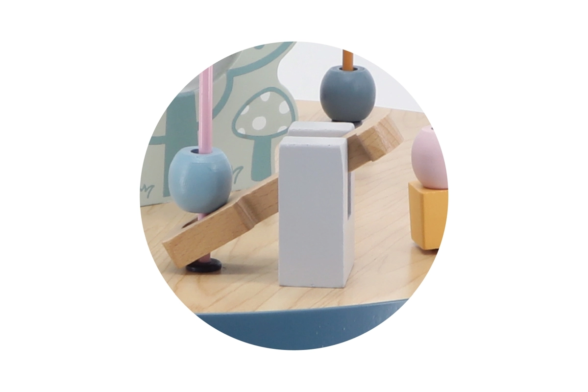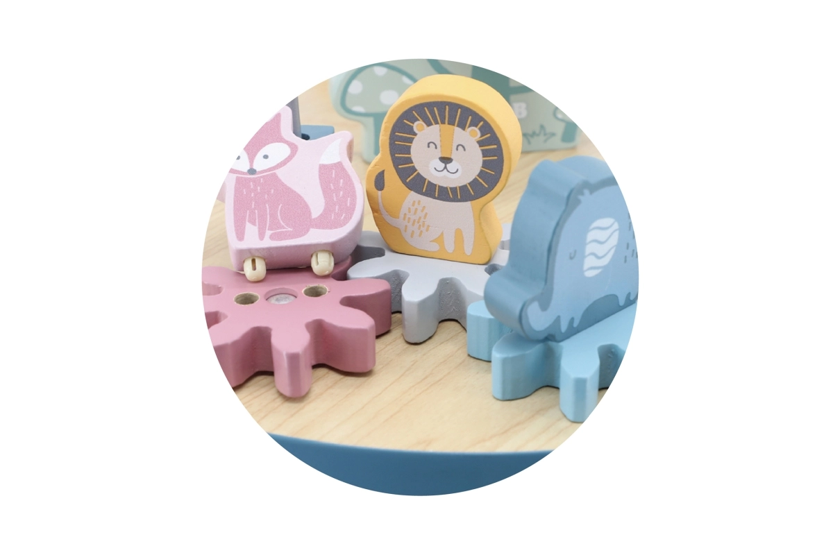 Helmemaailm vastupidaval puidust laual kutsub lapsi avastama. Värvilised kujundid ja armsad loomakesed (karu, rebane, siil) motiveerivad sõrmekesi liikuma, harjutavad täpset haaramist ning innustavad oma lugusid looma. Ideaalne valik koduseks “montessori”-stiilis mängides õppimiseks, mis arendab kannatlikkust, keskendumist ja kujutlusvõimet.