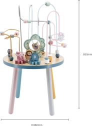 Kombinatsioon lakitud puidust ja vastupidavatest metallradadest koos mürgivabade värvidega. Praktilised laste mõõdud: kõrgus u 65 cm, laua läbimõõt u 38 cm.