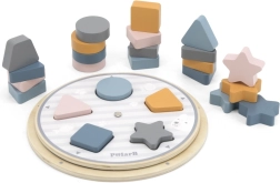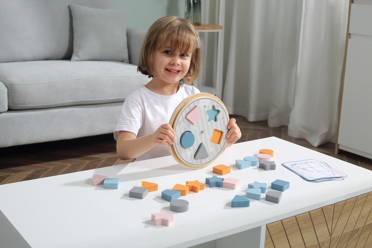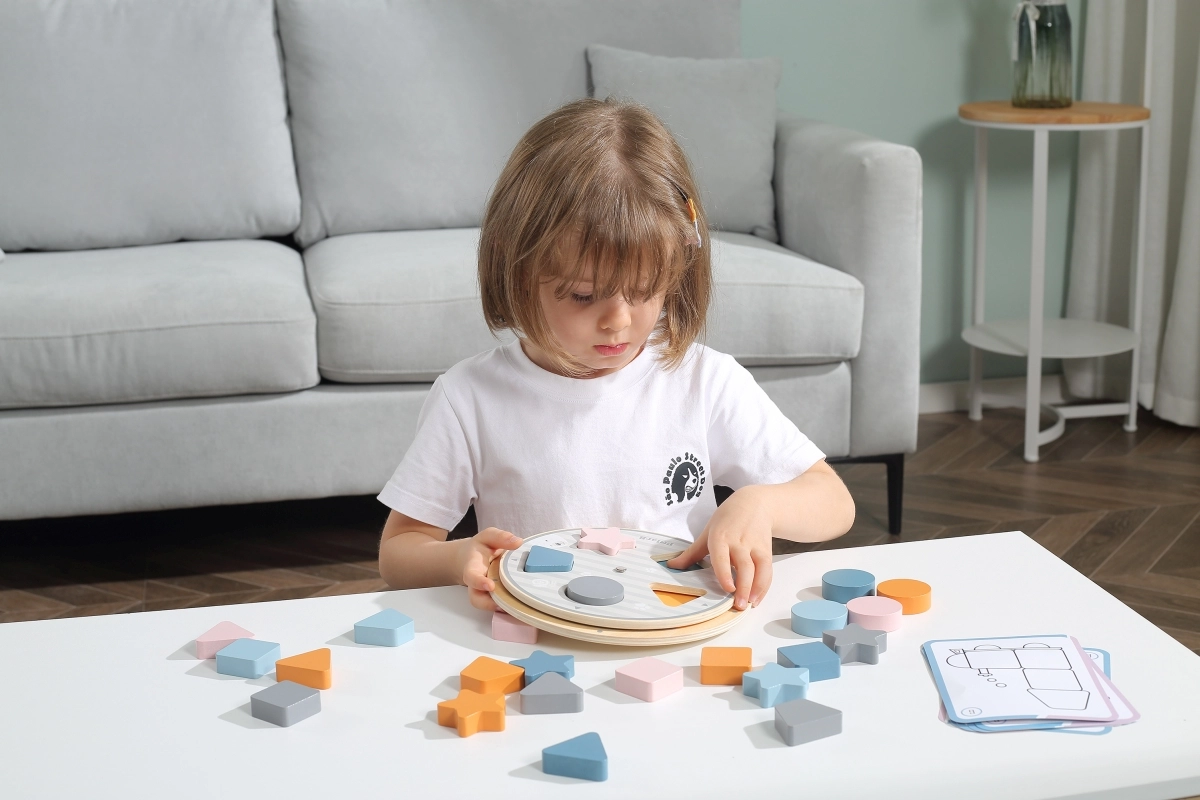 Lapsed sobitavad puidust tükid aluse väljalõigete sisse ning omandavad loomulikul viisil nii värvid kui ka põhilised kujundid – ring, ruut, kolmnurk ja täht.
