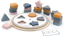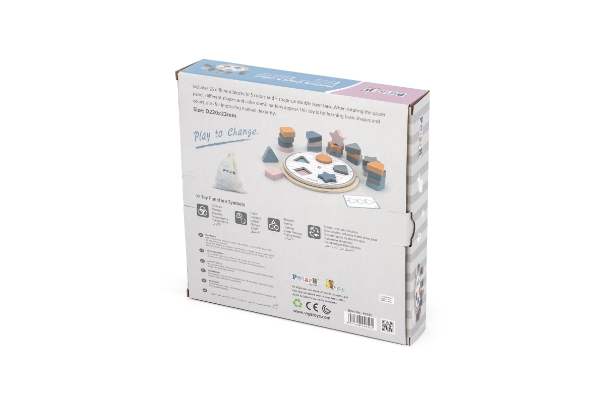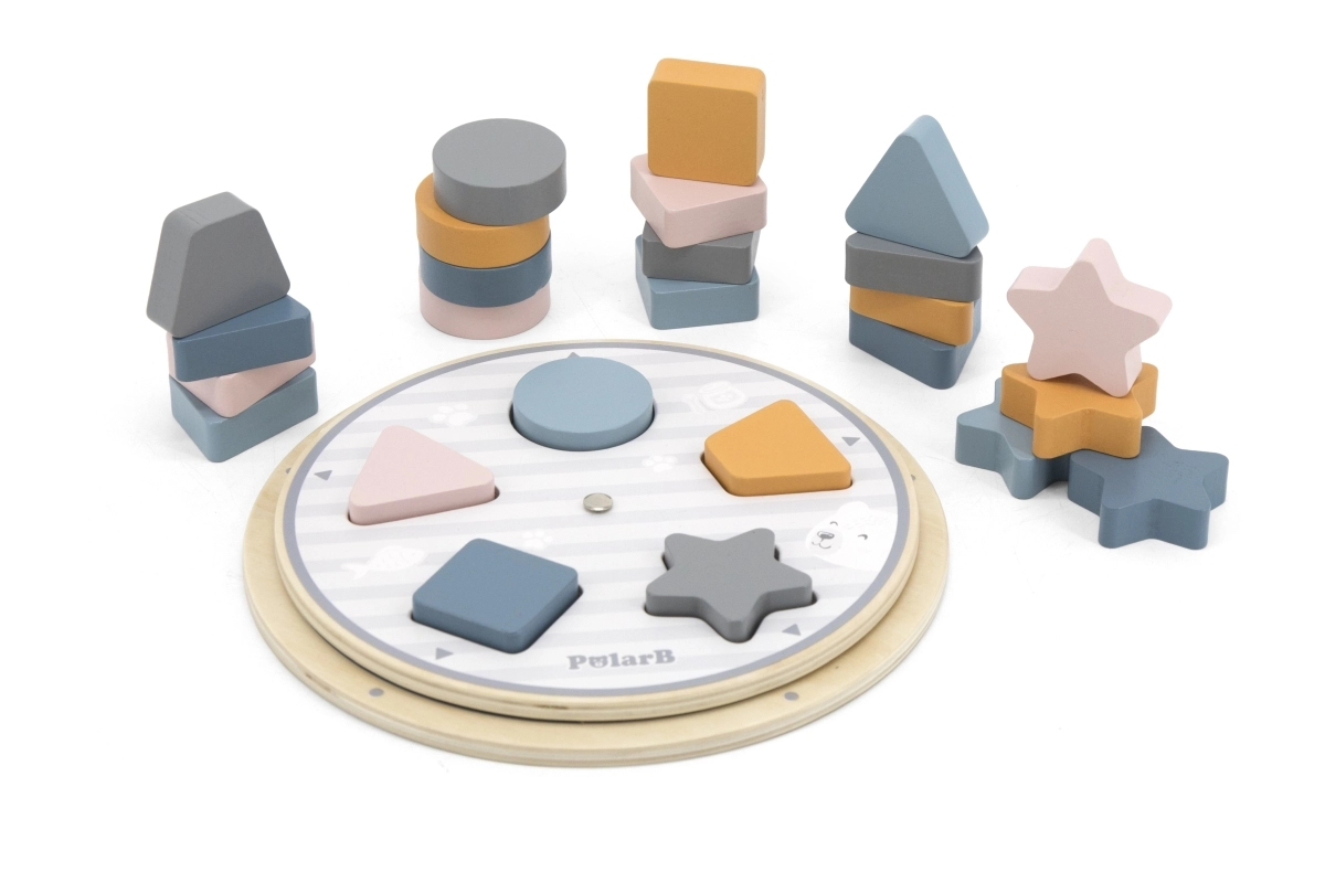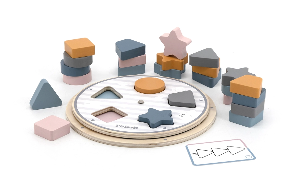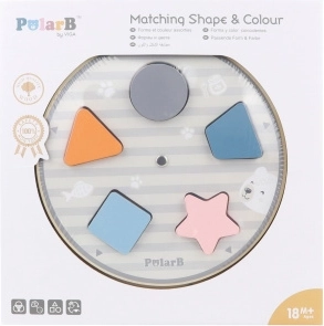Nutikas puidust mäng kõige pisematele, mis ühendab kujundite ja värvide sorteerimise, arendab peenmotoorikat ja loogilist mõtlemist. Komplekti kuuluvad puidust tükid, pööratav alus, näidiskaardid ja tekstiilkott. POLARB kollektsiooni mäng on valmistatud kvaliteetsest puidust, värvitud mittetoksiliste värvidega õrnades pastelltoonides ning lõbustab, õpetab ja arendab lapsi juba väga varases eas.