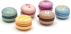 See armas komplekt sisaldab kuut erksavärvilist puidust makrooni omanäoliste motiividega. Osad kinnituvad üksteise külge takjapaelaga, nii et lapsed saavad hõlpsalt “segada” uusi maitseid ja mustreid. Ideaalne täiendus lastkööki, poodi või pagaripoodi.