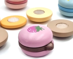 Makroonid on valmistatud kvaliteetsest puidust ja viimistletud mittetoksiliste värvidega – ideaalne igapäevaseks mänguks väikestele pagaritele.