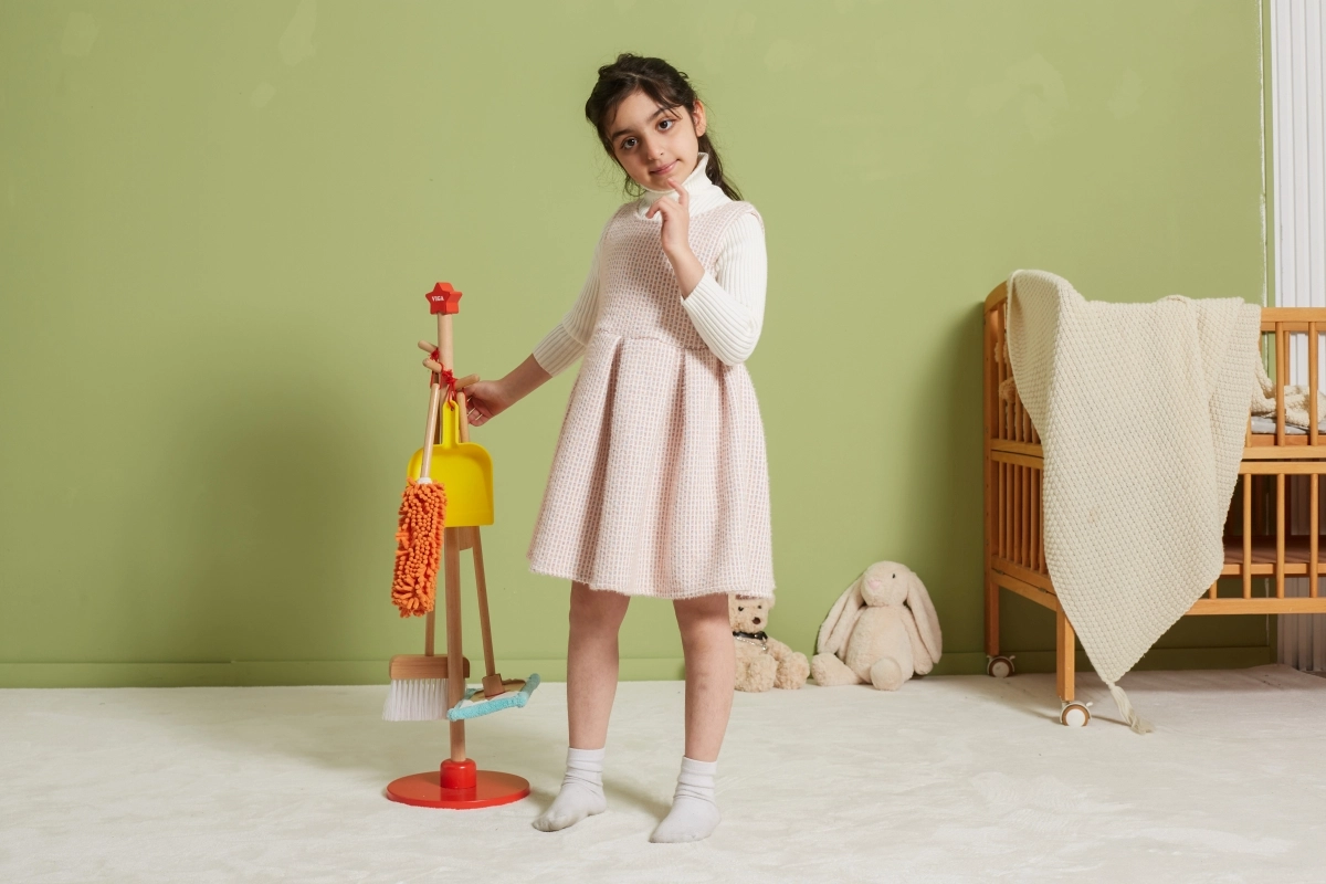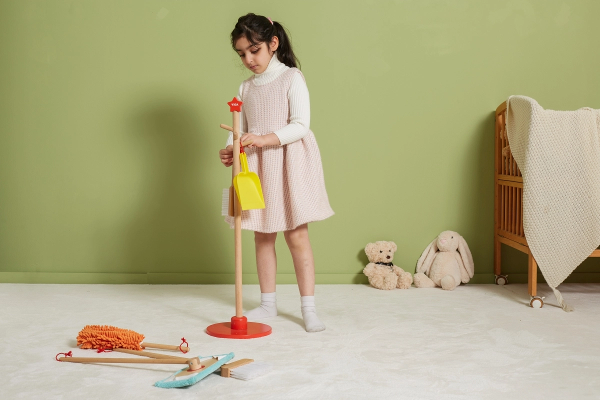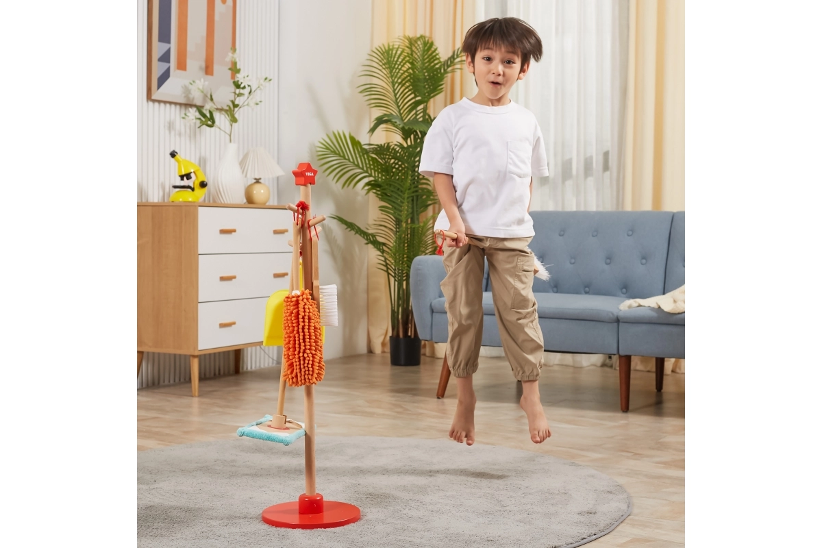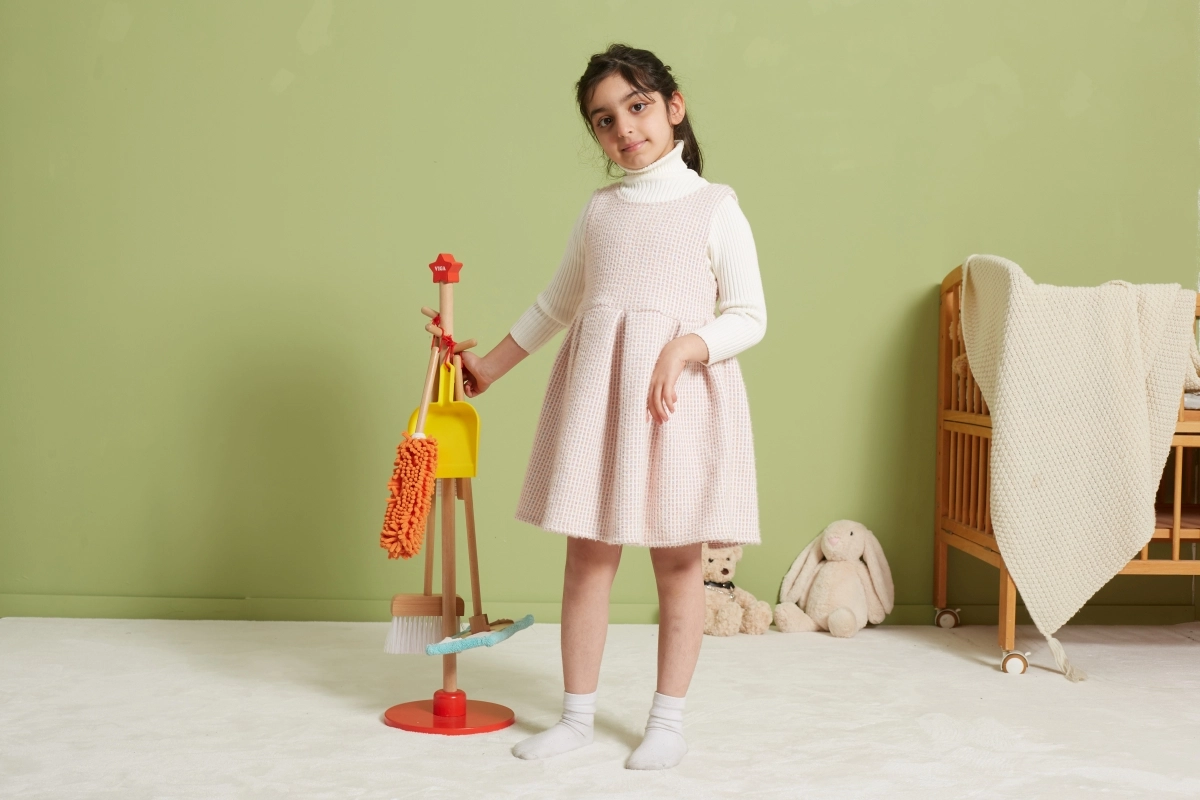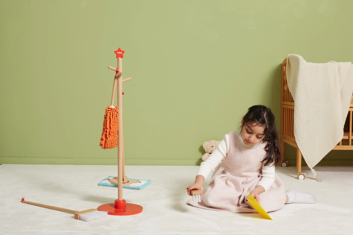 Viga puidust koristuskomplekt on ideaalne väikestele abilistele, kes tahavad aktiivselt korra hoidmisel kaasa lüüa. Tänu sellele komplektile, mis sisaldab harja, mopi, tolmulappi ja teisi vahendeid, arendavad lapsed oma motoorseid oskusi ja õpivad mängides vastutust.