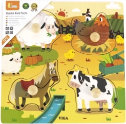 See puidust pusle on suurepärane valik vanematele, kes soovivad toetada oma lapse motoorsete oskuste arengut. Puslel on kaunid illustratsioonid taluloomadest – lambad, kanad, hobused ja lehmad. Iga tükk on varustatud praktilise nupuga, mis võimaldab väikestel kätel tükke kergesti haarata ja liigutada. Pusle on loodud silmas pidades ohutust ja vastupidavust, mistõttu sobib see suurepäraselt lastele alates 12. elukuust.