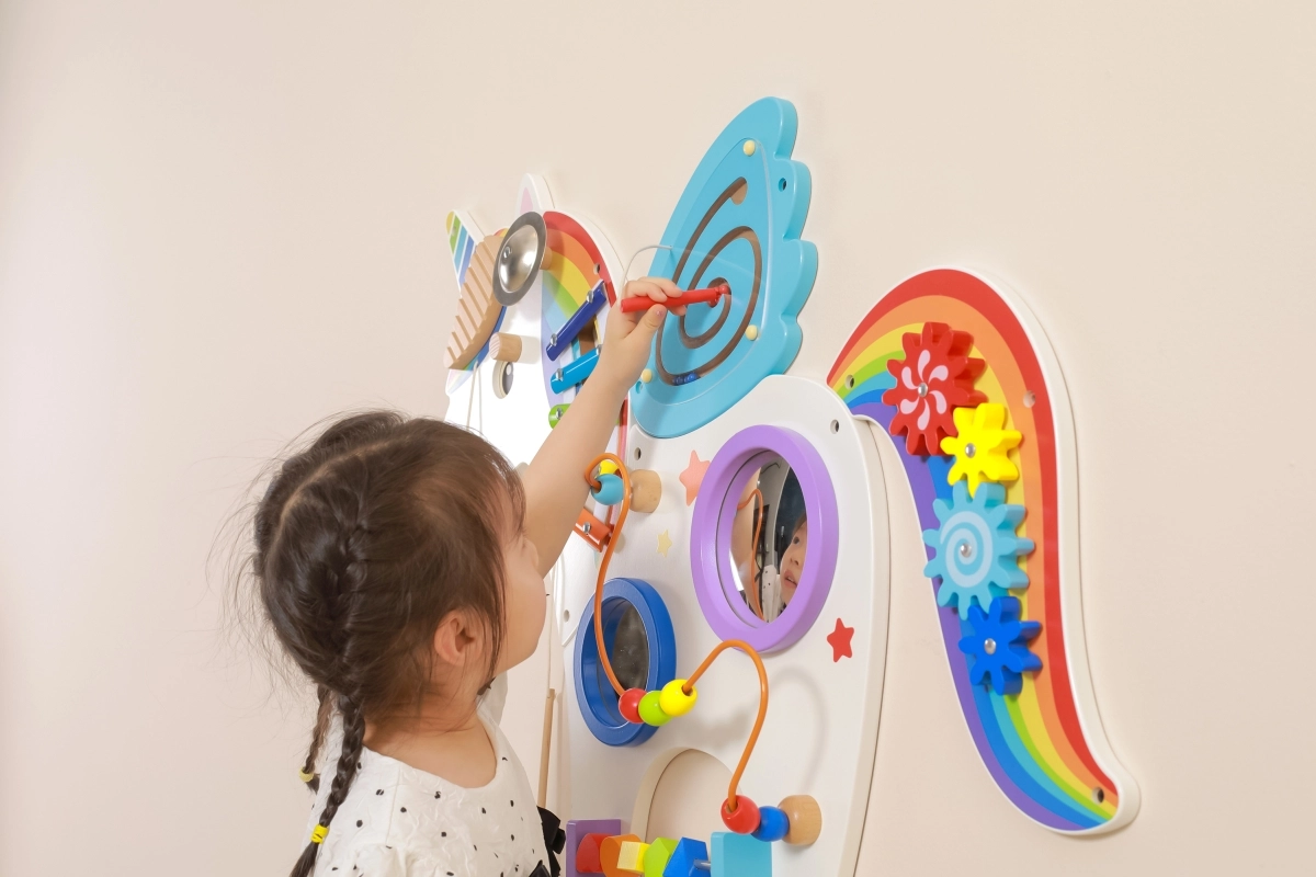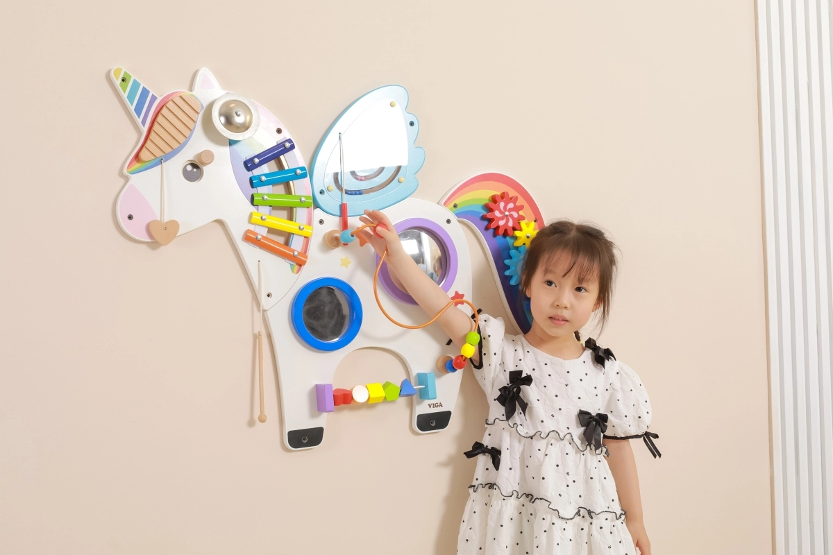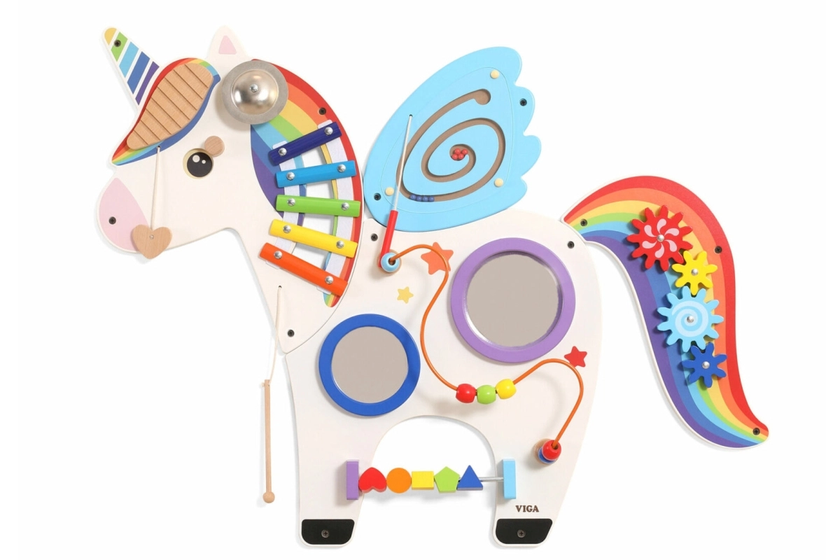 See multifunktsionaalne seinalaud ükssarviku kujul ühendab muusikalised, taktiilsed ja loogikat arendavad elemendid ühes köitvas tervikus. Lapsed mängivad ksülofonil, keerutavad hammasrattaid, proovivad magnetlabürinti ja peegleid ning harjutavad värve, kujundeid ja liigutuste koordineerimist.