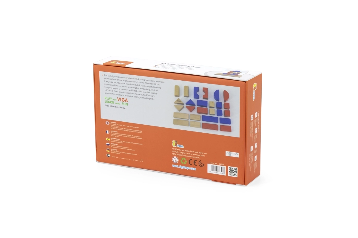 See läbimõeldud VIGA 3D ehituskomplekt matkib ruumis projekteerimist – lapsed ehitavad eeskujude järgi ja oma fantaasiaga läbipaistvate akrüülpaneelide taga, mis loovad köitva 3D efekti. Kaasas on raamat 32 väljakutsega kasvava raskusastmega, nii et mäng sobib nii algajatele kui ka väikestele meistritele.