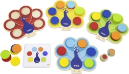 Komplekti kuulub 4× paabulinnu puidust alus, 36 ketast 6 värvitoonis, 20 kahepoolset ülesandekaarti ja 2 värvitäringut. Mäng toetab nii iseseisvat kui ka meeskondlikku tegutsemist ning valmistab suurepäraselt ette eelkooliks.