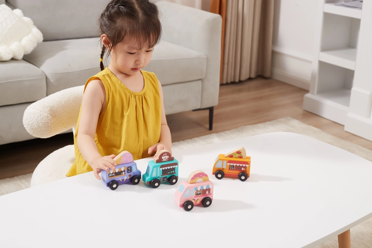 Kompaktse suuruse tõttu on autod mugavad hoida ka kõige väiksematel kätel. Mäng toetab peenmotoorikat, koordinatsiooni, värvide äratundmist ja loogilist mõtlemist. Komplekt on suurepärane täiendus lastesöögitegemise mänguköökidele või linnakomplektidele ning ideaalne ühismänguks õdede-vendadega.