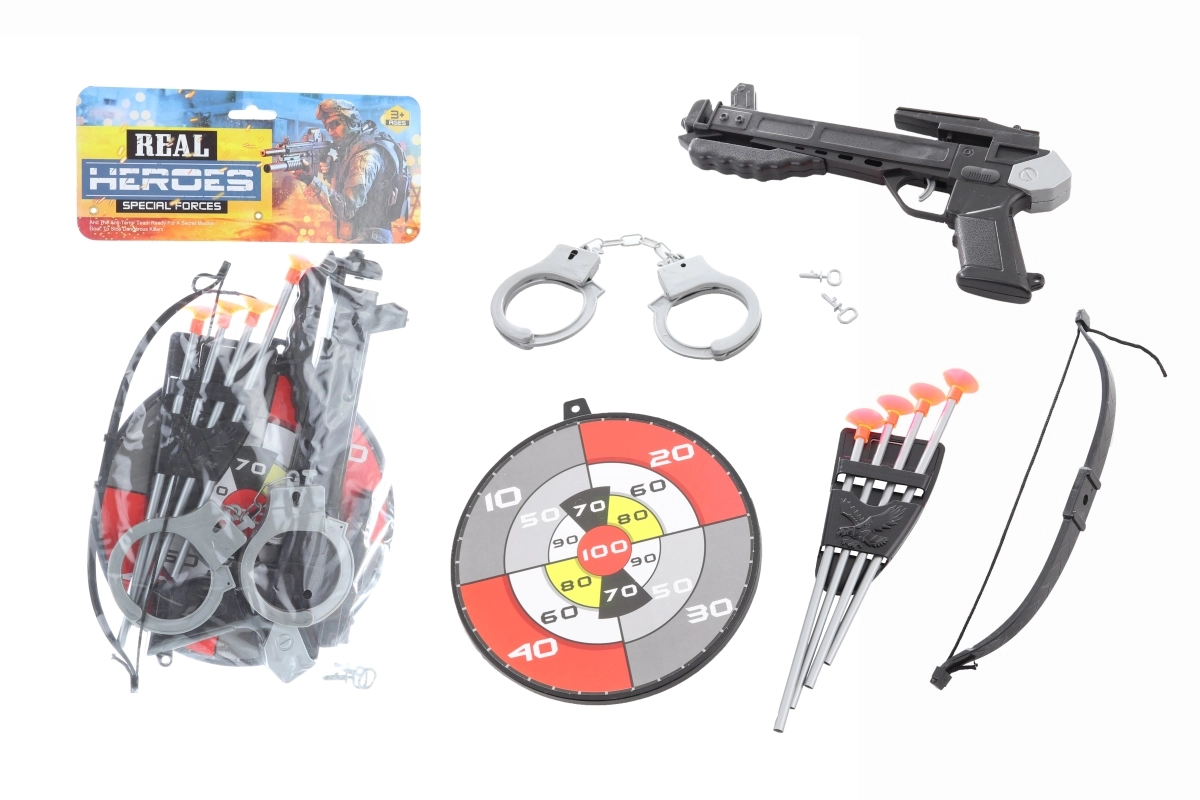 Lõbus laste amblikukomplekt alates 3. eluaastast sisaldab kõike põnevateks mängudeks – alates amblikust ja märklauast kuni plastkäeraudade ja püstolini.
