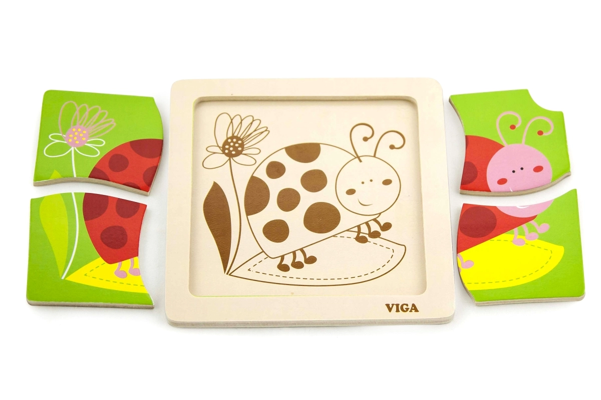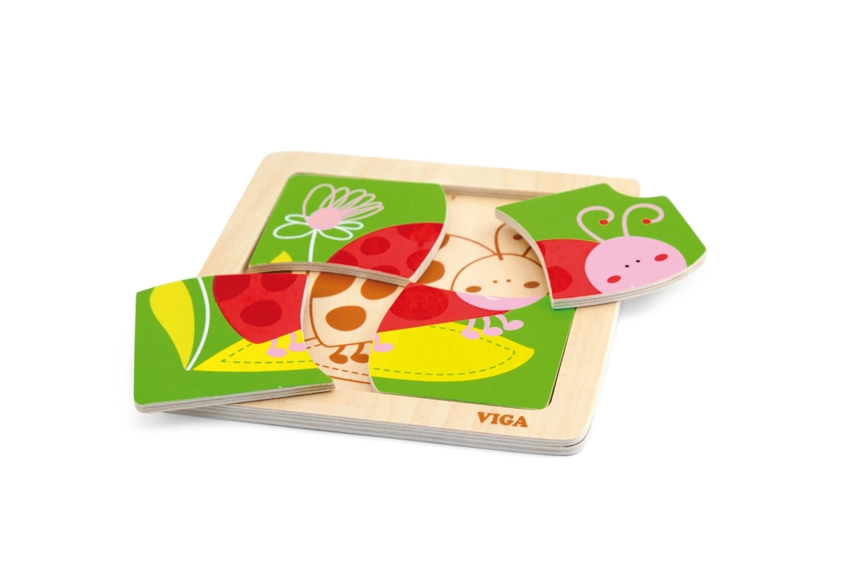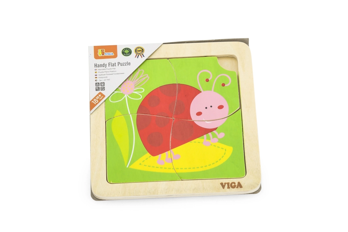 See lihtne puidust lepatriinupusle on suurepärane esimene pusle väikestele lastele. Tänu tugevatele ja siledatele tükkidele on seda mugav käes hoida ning neid on lihtne raamile sobitada. Elavates värvitoonides motiiv kutsub mängima ja toetab keskendumist.