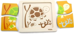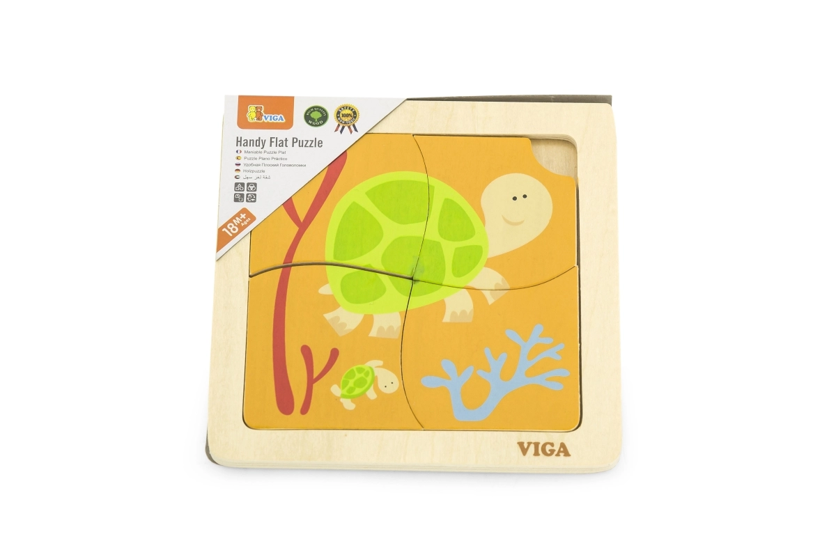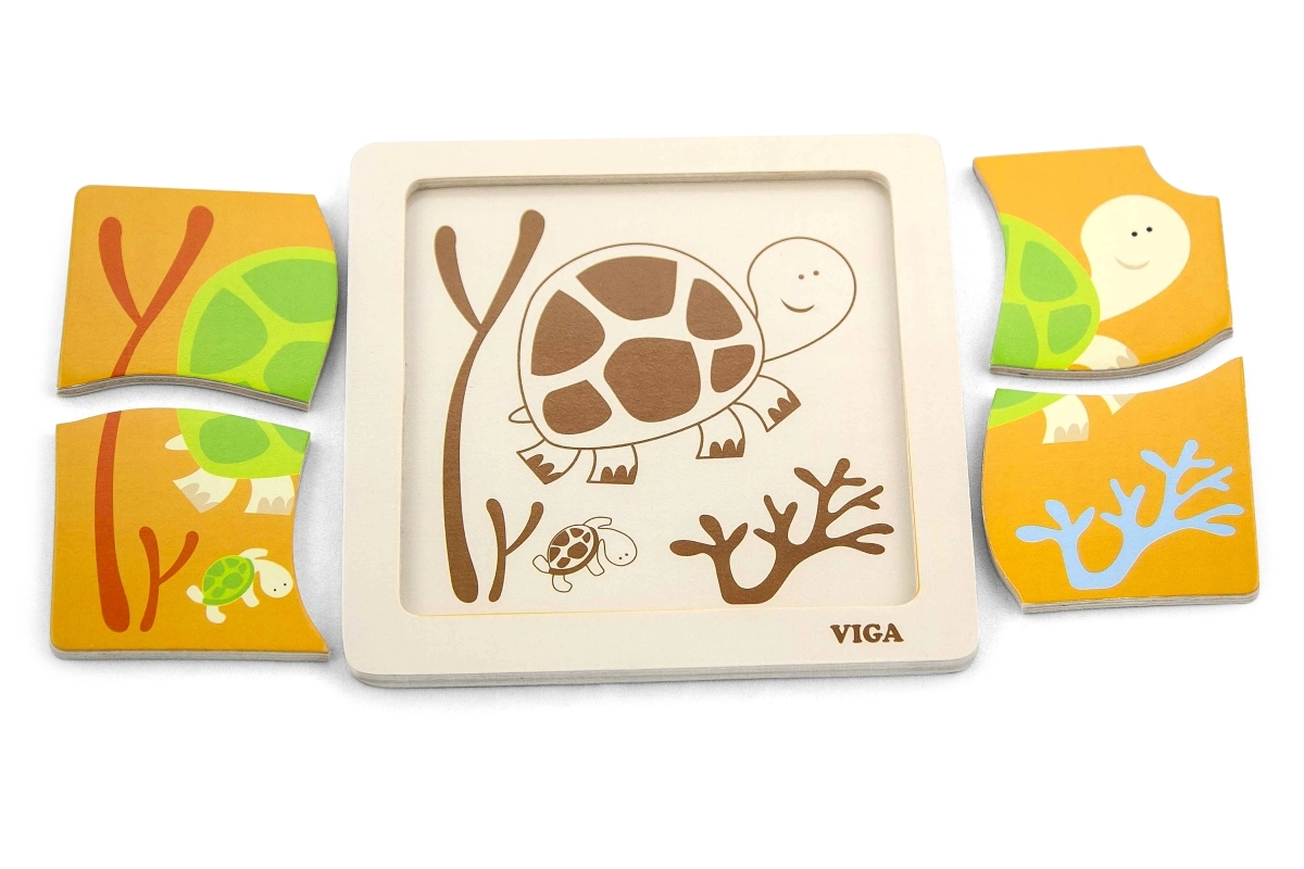 Puidust kilpkonna pusle on mõeldud lastele alates 18. elukuust. See koosneb neljast suurest tükist, mis mahuvad hõlpsasti puidust raami või mida saab kokku panna ka eraldi. Iga tükk on värvikirev ning pakub ainulaadse võimaluse arendada lapse ruumilist kujutlusvõimet ja silma-käe koordinatsiooni.
