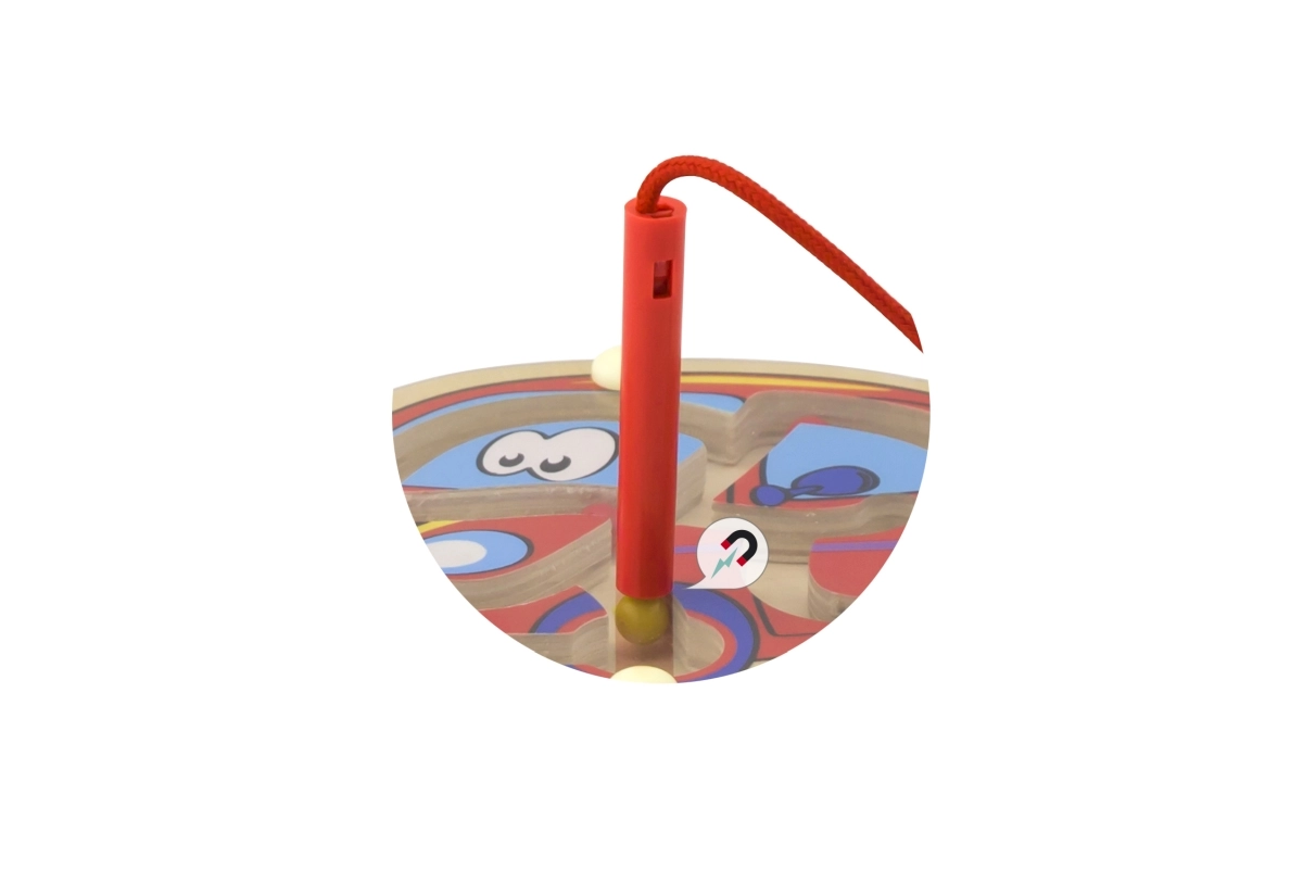 Tänu nööriga kinnitatud magnetpulgale on labürindi kasutamine lihtne ning oluliste osade kaotsiminek ei ähvarda.