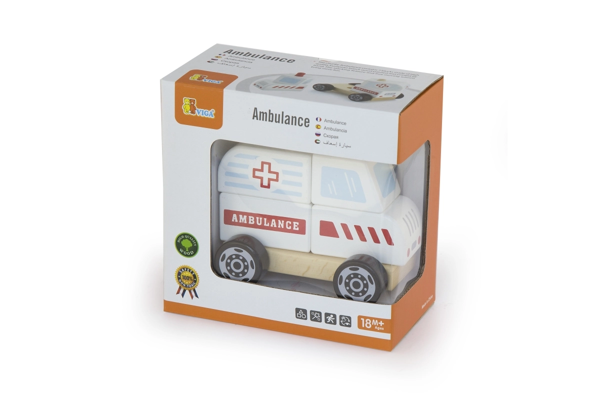 Avastage kvaliteetne puidust kiirabi, mis ühendab kokkupandavad klotsid ja liikuvad rattad lõbusaks mänguks ja motoorika arendamiseks. Ohutu teostus siledate servadega, ideaalne lastele alates 18. elukuust. Kompaktsed mõõdud, vastupidavad materjalid ja pilkupüüdev disain AMBULANCE trükiga tagavad tundidepikkuse loova mängu.