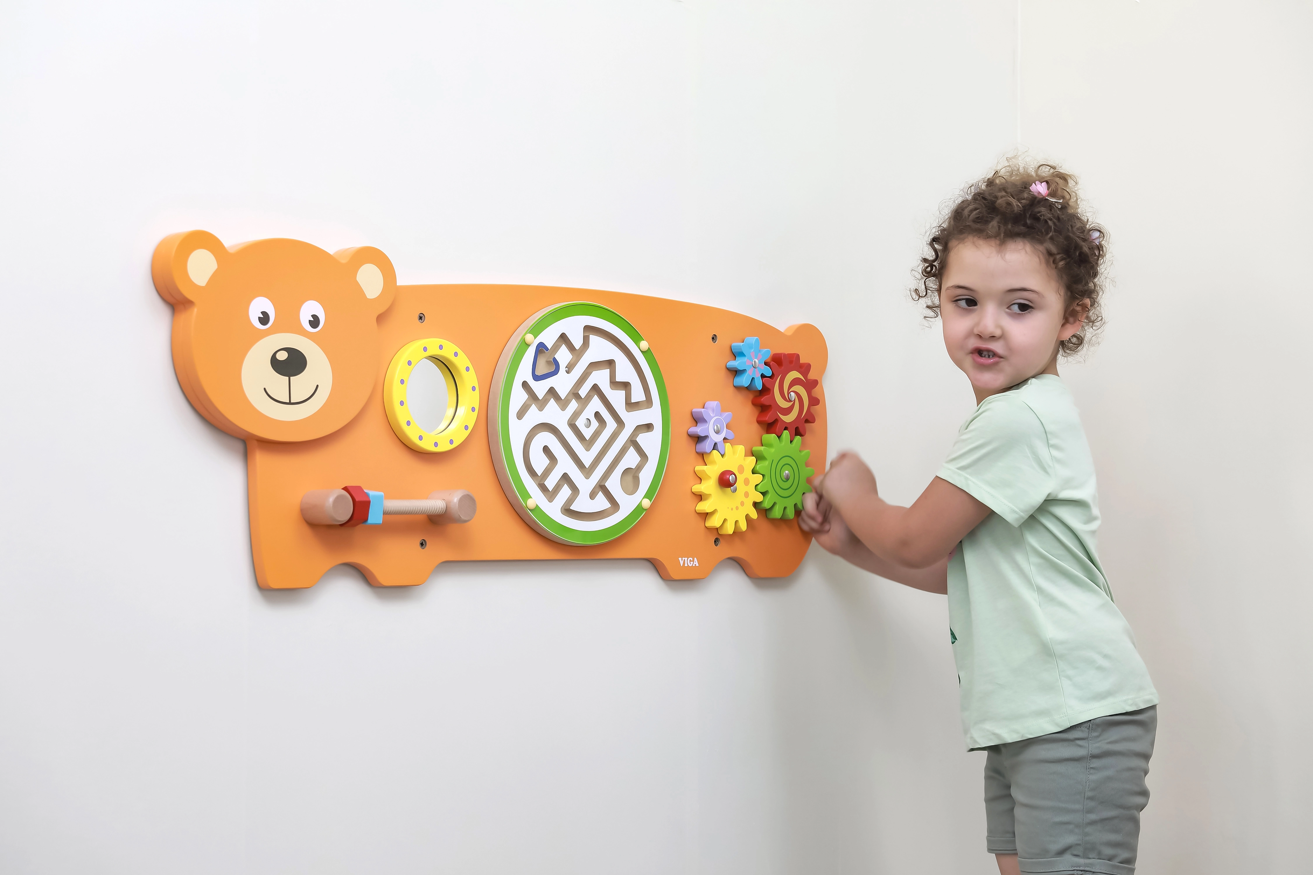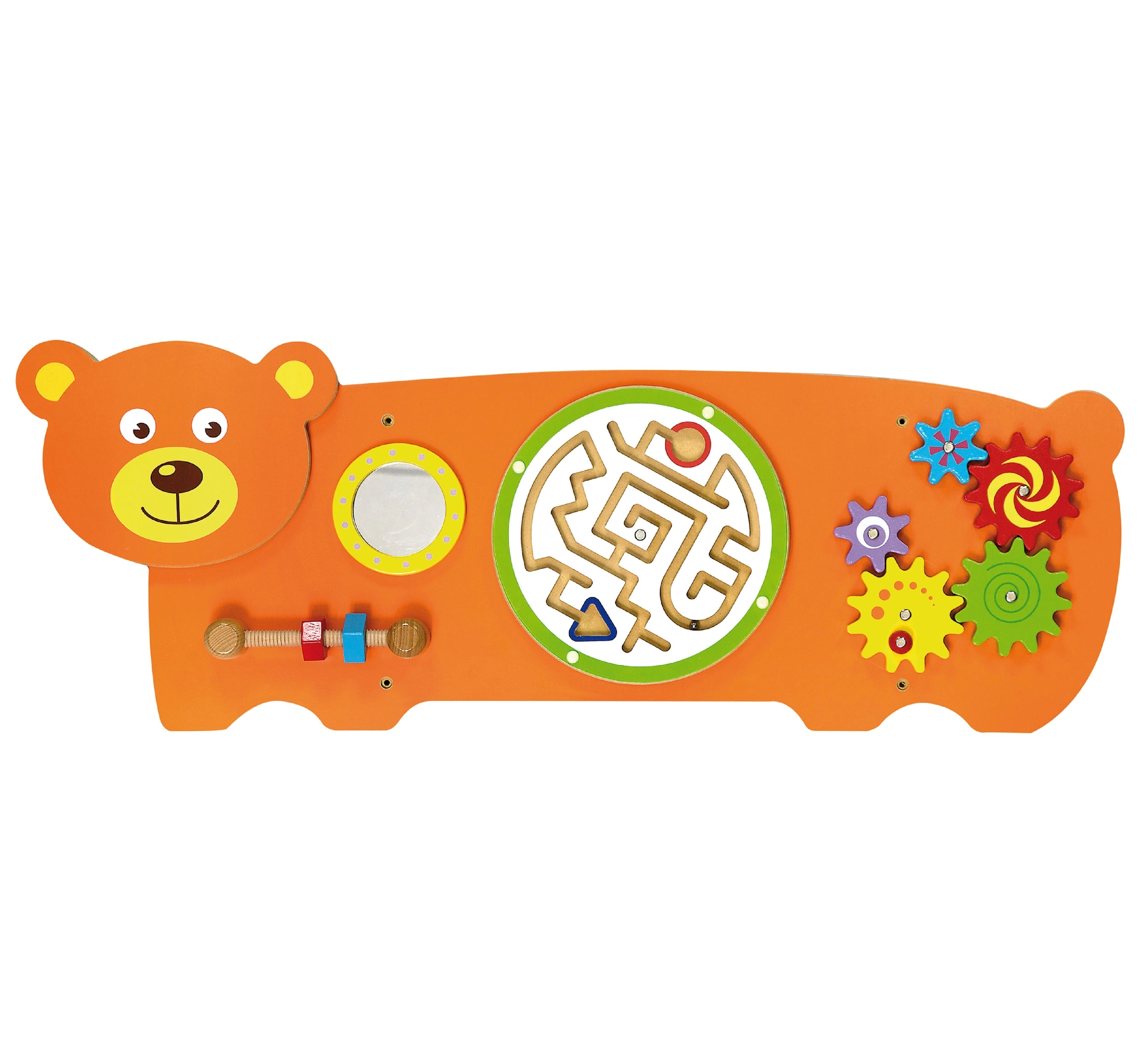 Karu-kujuline meelelauatüvel on loodud Montessori põhimõtetest lähtuvalt, et lapsi loomulikult motiveerida avastama ja harjutama oskusi. See pakub mitut tegevust: hammasrataste pööramine, kuuli juhtimine labürindis, vaatlemine ohutus peeglis ning haarde treenimine keermega kruvide abil. Tänu vastupidavale puidust konstruktsioonile ja võimalusele seinale paigaldada sobib see suurepäraselt lastetubadesse, mängunurkadesse ja lasteaedadesse.