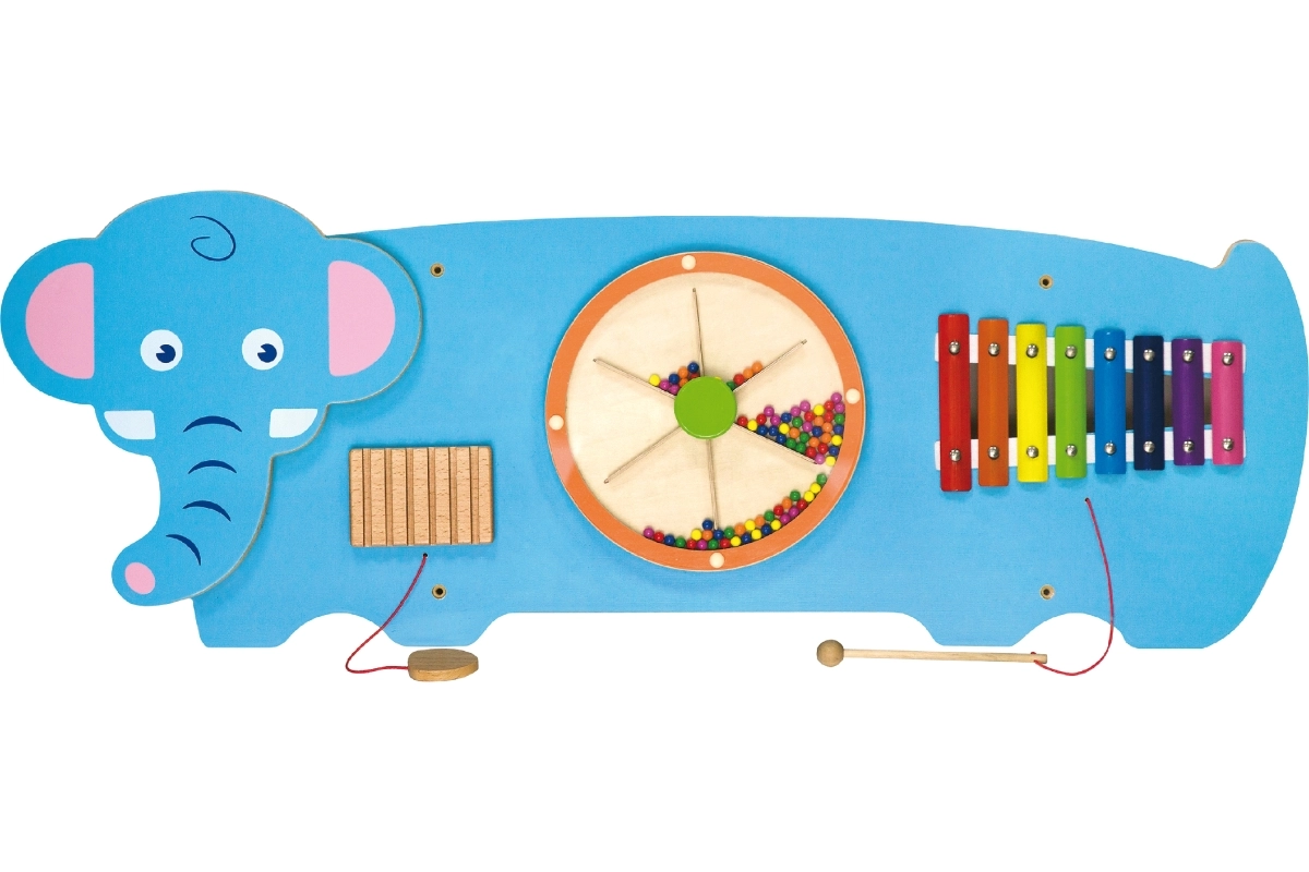 Armas elevandi-kujuline seinalaud muudab seina loovaks nurgakeseks. Lapsed naudivad turvalist sensoorset ja muusikalist mängu, arendades kuulmist, nägemist, kompimist ning käe-silma koordineerimist. Tugev puidust konstruktsioon ja seinale kinnitamine tagavad stabiilsuse ja vastupidavuse igapäevaseks kasutuseks.