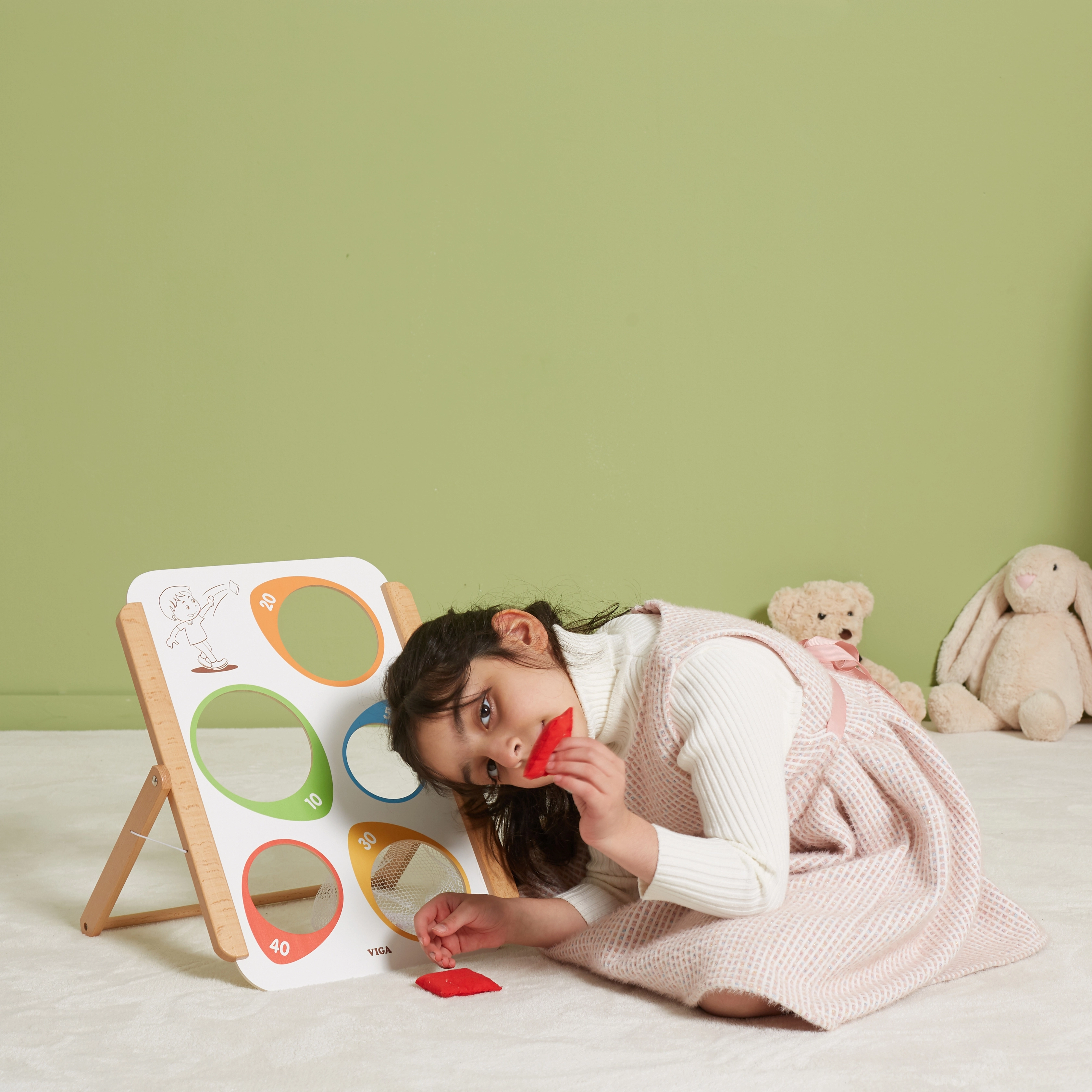 Viga puidust täpsusviskemäng pakub nii lõbu kui ka hariduslikku väärtust. Sobib ideaalselt nii koduseks kasutamiseks kui ka õuetegevusteks. Kogu mäng on valmistatud lakitud puidust ja värvitud mittetoksiliste värvidega, mis tagab pikaajalise mängurõõmu ilma terviseriskideta. Arendab suurepäraselt laste oskusi ning toetab motoorse koordinatsiooni ja kontsentratsiooni paranemist.