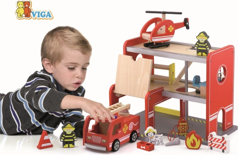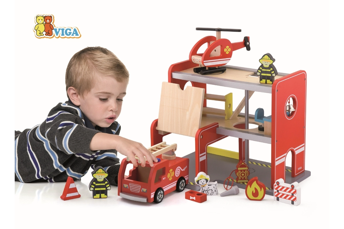 Viga puidust tuletõrjedepoo on mitmekorruseline mängukomplekt, mis toetab rollimängu, arendab peenmotoorikat ja ettekujutusvõimet. Lapsed saavad sõita autoga garaažist välja, maanduda helikopteriga ülemisel platsil ja libiseda renni mööda otse väljakutsele. Värvikad detailid ja kvaliteetne puidust konstruktsioon tagavad atraktiivse välimuse ning vastupidavuse igapäevasel kasutamisel.