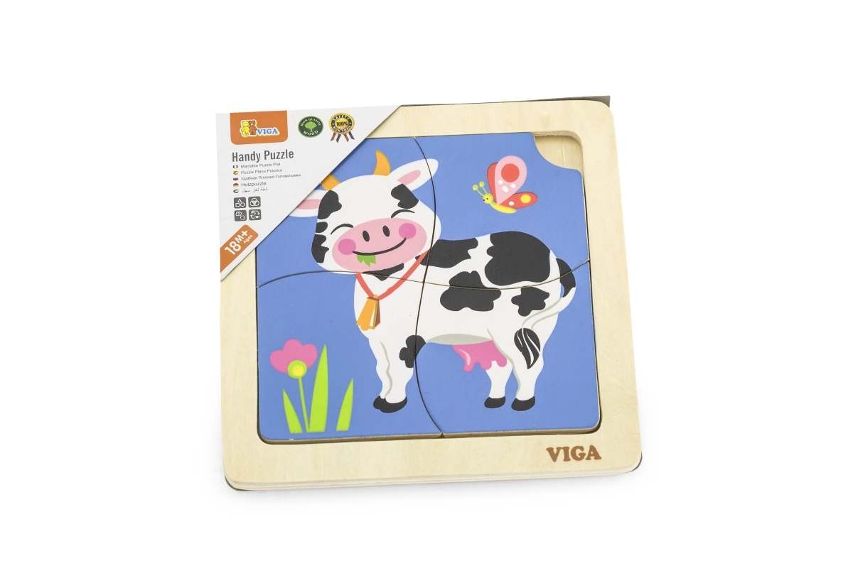 Viga kaubamärgi puidust lehmakesega pusle pakub väikestele lastele suurepärast võimalust õppida kujundeid ära tundma ja arendada peenmotoorikat. Komplektis on 4 pusletükki ning aluskujutis, mis aitab lapsel tükke õigesti paigutada. Pusle on hoolikalt valmistatud ohutust puidust ja kaunistatud erksate, mittetoksiliste värvidega. Iga mäng selle puslega on teie lapsele täis rõõmu ja arengut.