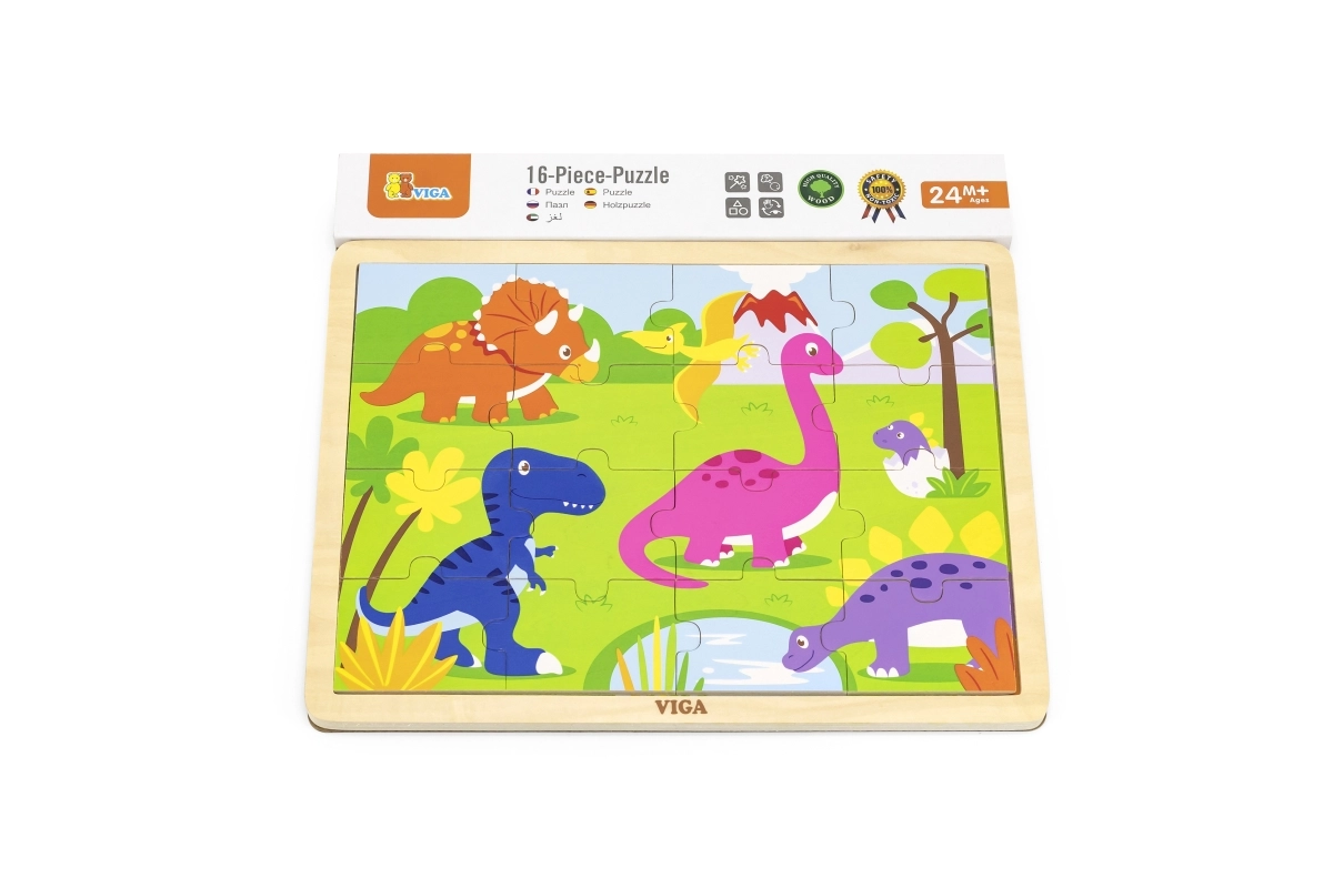 Avastage kvaliteetne VIGA puidust dinosauruspusle, mis pakub lastele esimest rõõmu kokkupanekust. 16 tükki arendab peenmotoorikat, silma-käe koordinatsiooni ja loogilist mõtlemist. Tükke saab paigutada puidust alusele raamiga või panna pildi kokku ka ilma raamita. Valmis pusle mõõt on u 27,5 × 20 cm, sobib alates 24. elukuust.