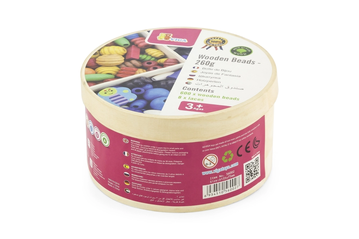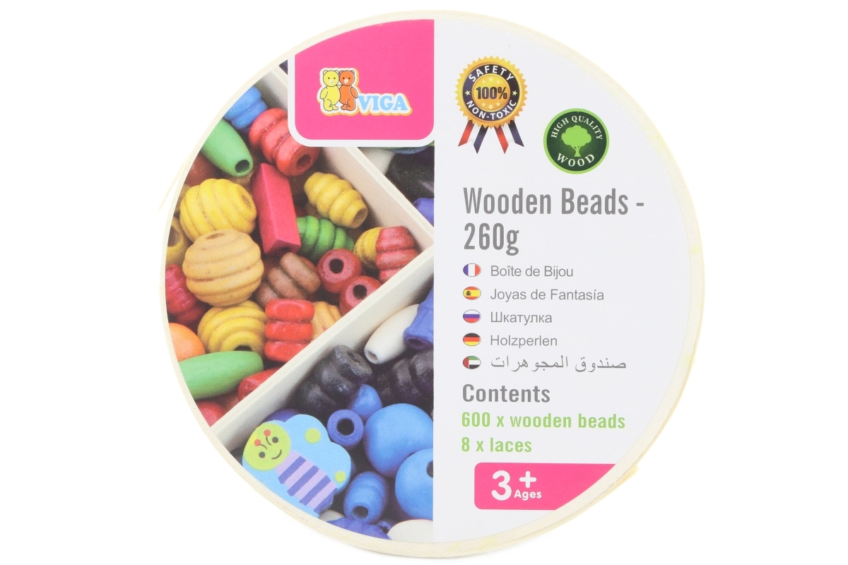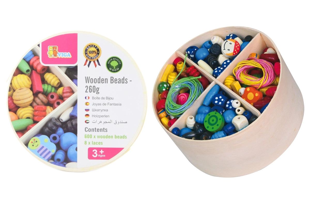 Viga puidust pärlid pakuvad lõputuid võimalusi loovuseks ja lõbuks. Lapsed saavad 8 kaasasoleva nööriga läbipõimida kokku 600 pärli, millest saab teha kauneid käevõrusid ja kaelakeesid. See mänguasi aitab arendada laste loovust ja peenmotoorikat.