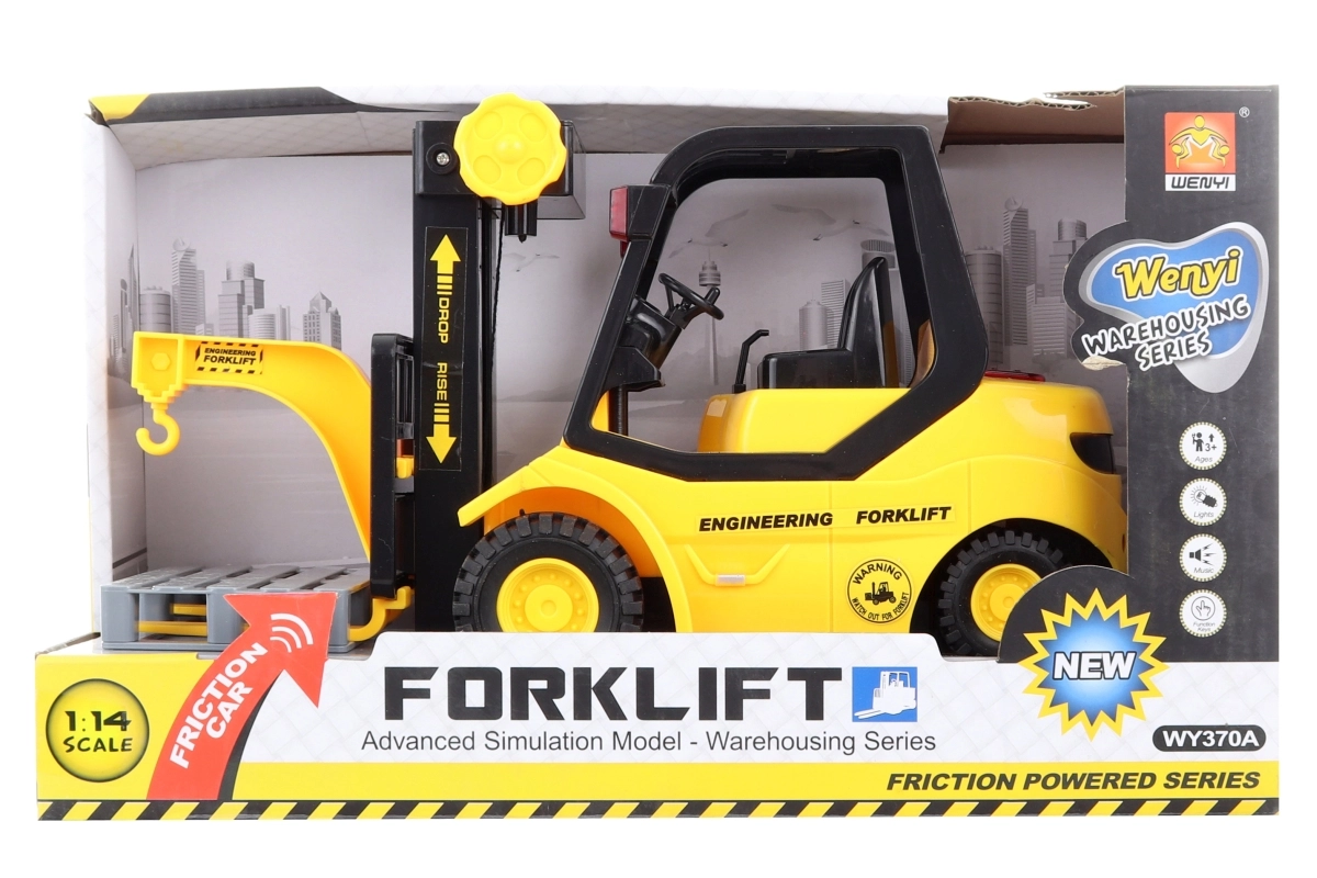 Realistlik plastist tõstuk mõõtkavas 1:14 rõõmustab väikseid ehitajaid alates 3. eluaastast. Nupu vajutamisel teeb häält ja süttib, mis suurendab realistlikku laomängu või ehitustegevust. Toiteallikaks on 3× AG13/LR44 patareid, mis on komplektis kaasas.