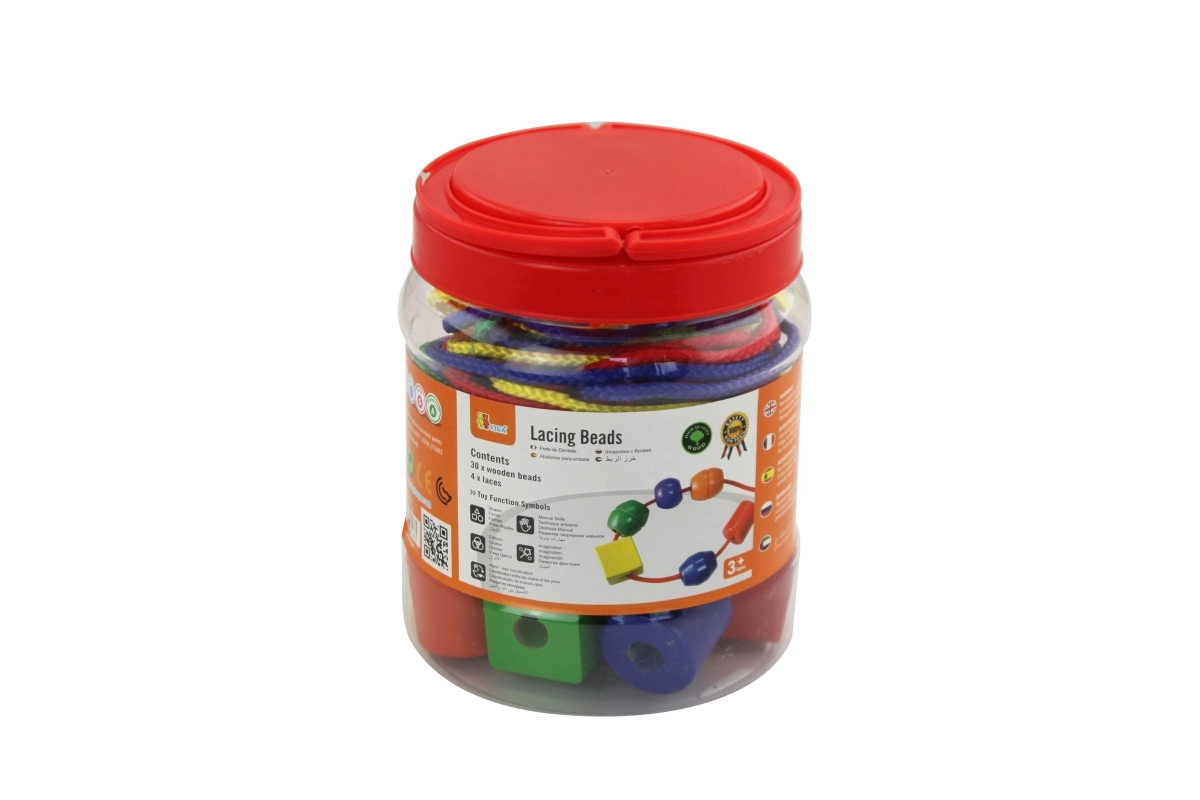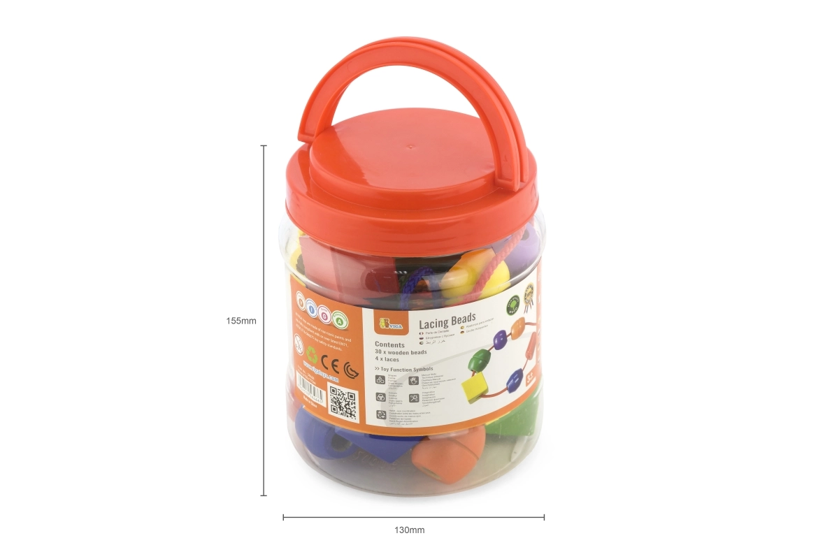 See eriti suurte puidust helmeste komplekt on suurepärane mänguasi laste varaseks arenguks. Tänu silmapaistvatele värvidele ja erinevatele kujunditele harjutavad lapsed sorteerimist, loendamist ja loovust, samal ajal tugevdades haaret ja keskendumist. Helmeste mõõt on kohandatud väikestele kätele, mistõttu on läbilükkimine lihtne ja lõbus.