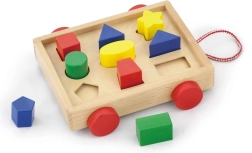 Puidust kujundipusle - käru pakub lastele lõbusat ja harivat viisi peenmotoorika parandamiseks. Komplekti kuulub 24,5 × 22 × 7 cm mõõtmetega käru ning 9 eri värvi klotsi erinevates kujudes, mis tuleb õigesti avausse paigutada. See käru motiveerib lapsi mängima, samal ajal õppides kujundite äratundmist.