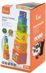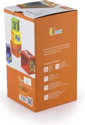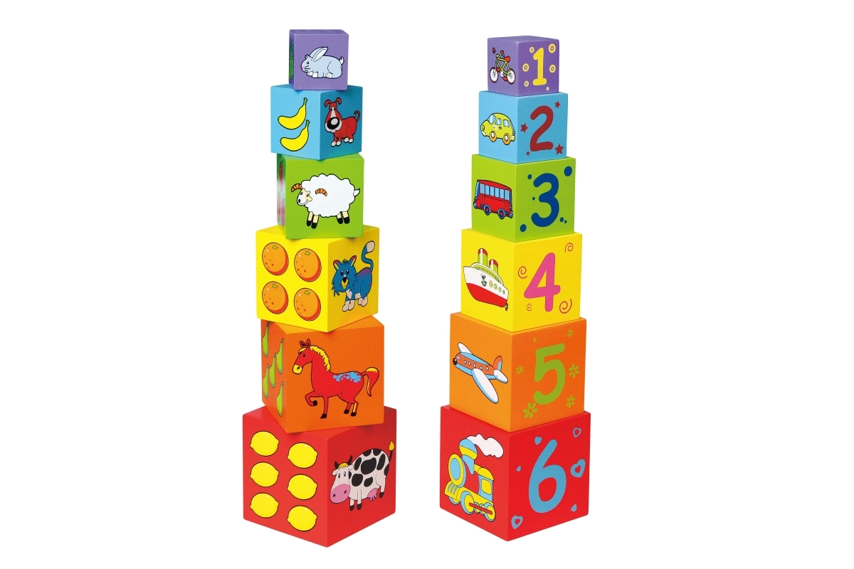 Iga klots on värviline ja illustreeritud piltidega – loomad, numbrid, puuviljad ja transport. See mitmekülgsus loob rohkelt võimalusi avastamiseks ja õppimiseks.