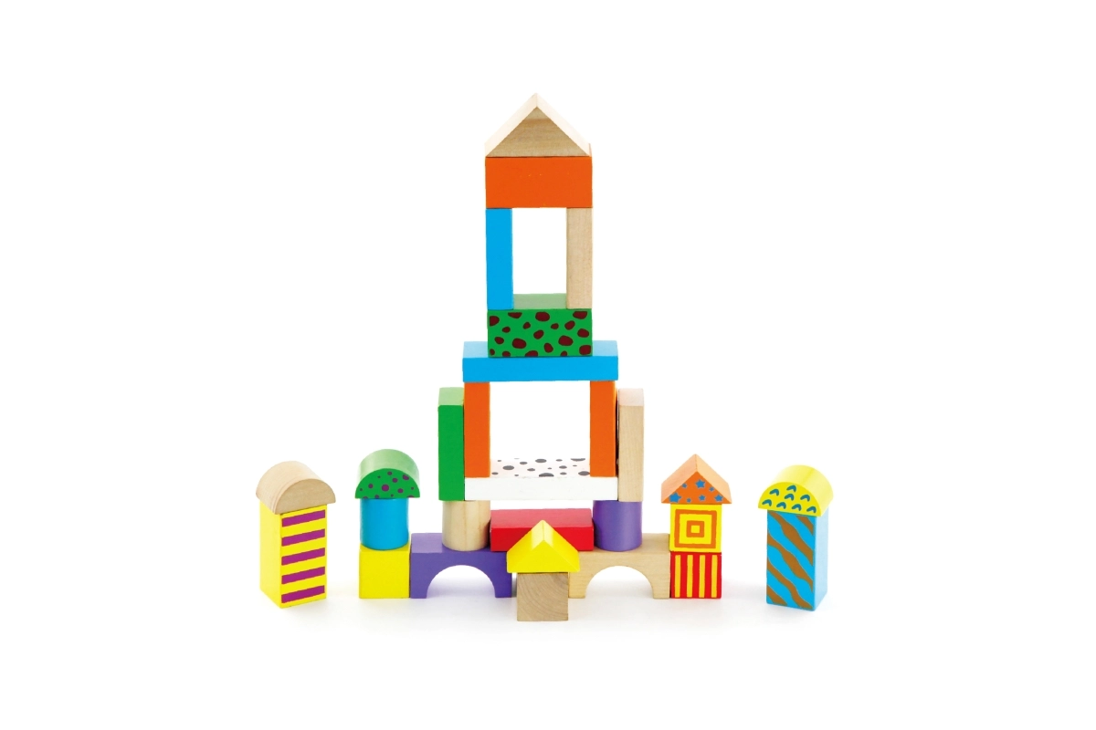 Erinevad kujundid – klotsid, silindrid, kaared ja katused – ergutavad fantaasiat ning toetavad peenmotoorikat ja ruumilist ettekujutust.