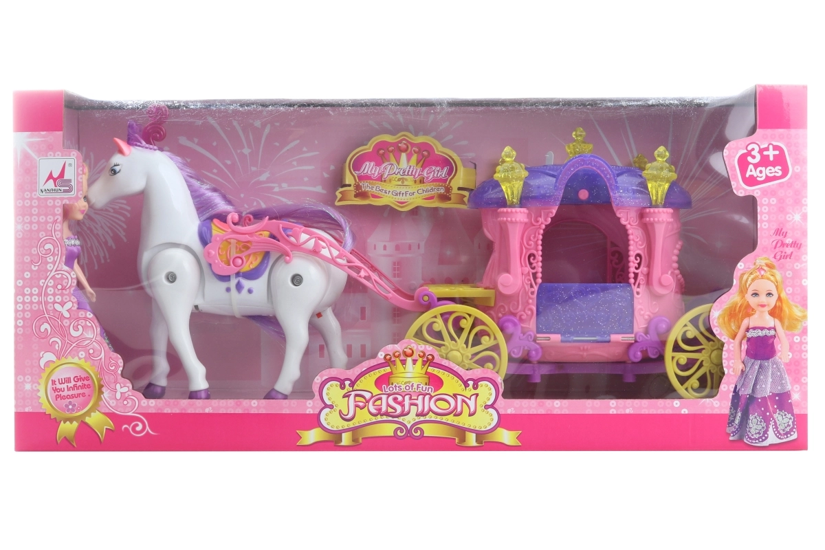 Tutvustame imelist komplekti Hobune nukuvankriga, mis toob rõõmu ja lõbu kõigile lastele. Interaktiivne komplekt sisaldab hobust, mis kõnnib ja teeb hääli pärast 2 AA patarei (ei kuulu komplekti) sisestamist, ning kaunist vankrit, mis töötab valgustusega 3 AG13 patareiga (ei kuulu komplekti). Lisaks sisaldab komplekt armsat umbes 13 cm kõrgust nukku, muutes selle suurepäraseks täienduseks laste mängudele.