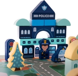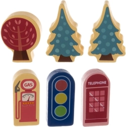 Komplektis on ka lisad, nagu puidust tegelaskujud, sõidukid ning dekoratiivsed elemendid, näiteks puud ja tänavaelemendid. Väga detailne disain annab mängule realistliku tunde ja köidab suurepäraselt eri vanuses lapsi.
