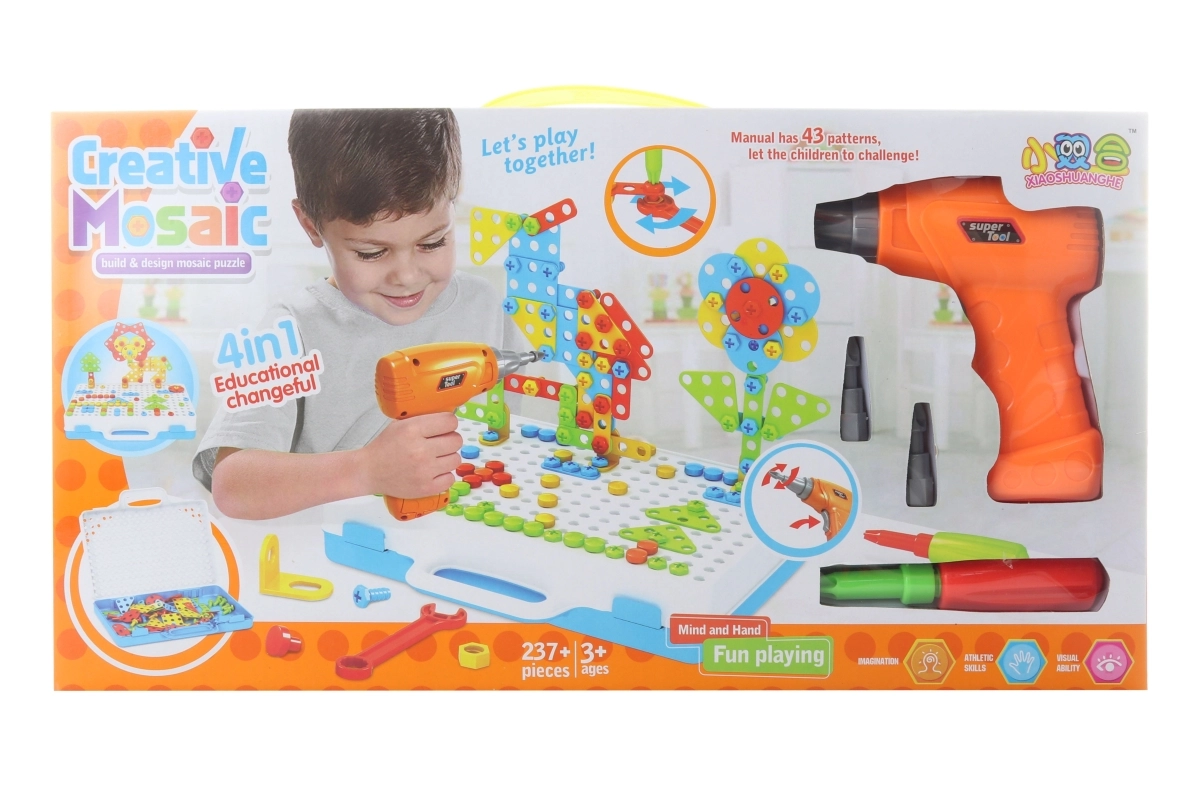 Loominguline kruvimisstavekomplekt puuriga pakub 3+ aastastele lastele tundide kaupa lõbu ja õppimist. Praktilises kohvris on 237 detaili, laste puur, kruvikeeraja ja juhend. Lapsed arendavad peenmotoorikat, loovust ja loogilist mõtlemist, luues värvilisi mustreid ja 3D-loomingut augulisel plaadil.