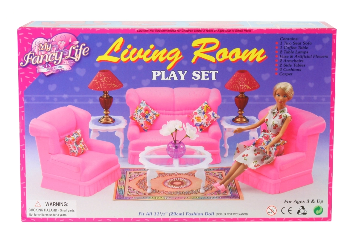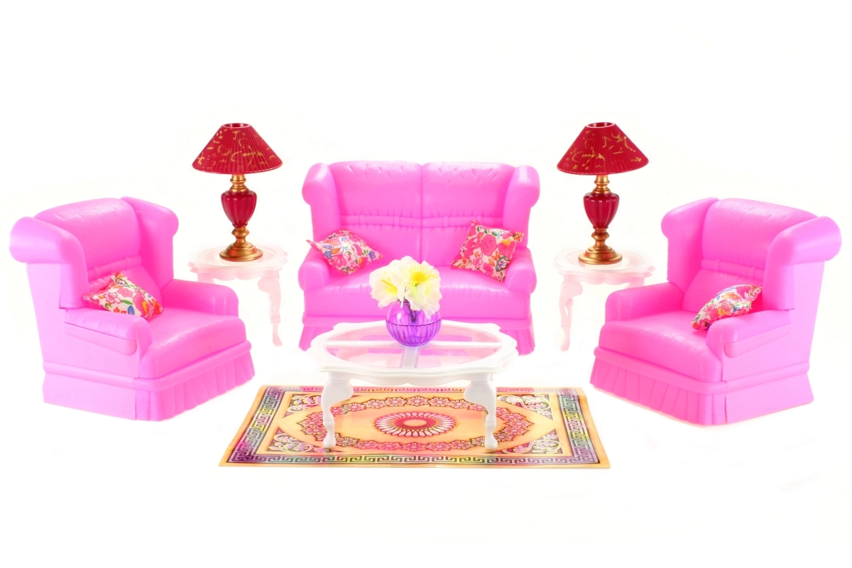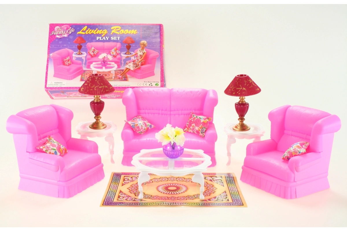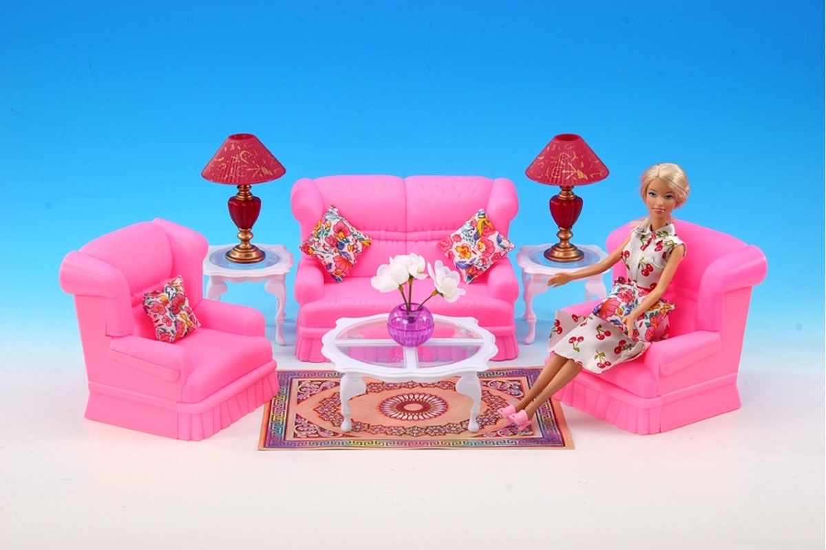 Stiilne GLORIE elutoa komplekt nukkudele muudab iga nukumaja hubaseks koduks. Komplektis on diivan, kaks tugitooli, diivanilaud ja abilauad, lambid ja dekoratsioonid. Ideaalne loovaks mänguks ja fantaasia arendamiseks. Täielik elutoa sisustus, detailirohked lisad ja vastupidav plastmaterjal rõõmustavad lapsi alates 3. eluaastast.