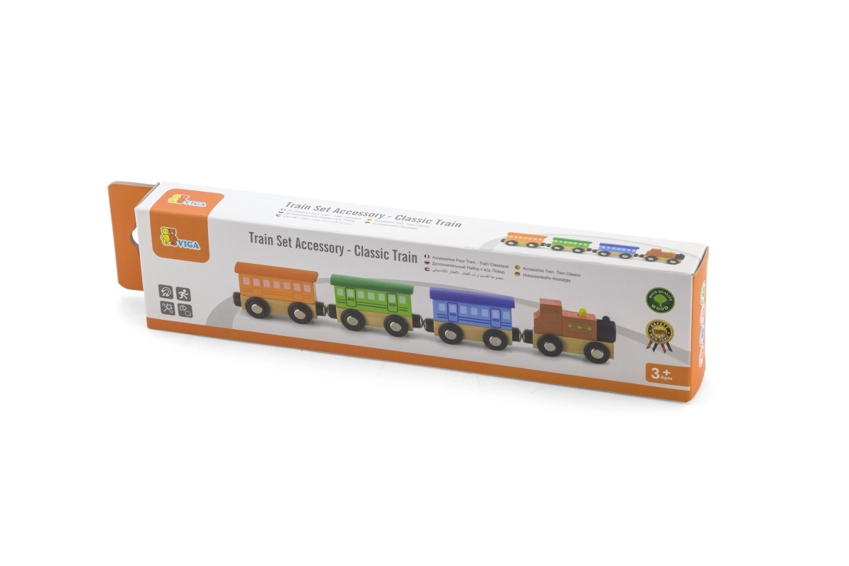 Puidust komplekt Klassikaline rong sisaldab 4 osa, mis on omavahel ühendatud magnetitega. Mänguasja on kujundanud tunnustatud puidust mänguasjade tootja Viga Toys. Komplekti saab kasutada eraldi mänguasjana või täiendusena teistele rongiradadele, konstruktoritele ja komplektidele.