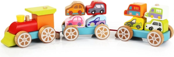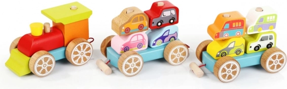 See värviline puidust pusle sisaldab 14 detaili, millest lapsed saavad kokku panna rongi kahe vaguni ja kaheksa autoga. Mängides üksikute detailidega arendavad nad ka oma senso-motoorseid oskusi, loogilist mõtlemist ja loovust.