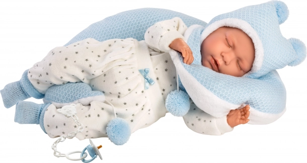See stiilne riietuskomplekt NEW BORN LLORENS nukule suuruses 40–42 cm pakub kõike, mida lapsed vajavad loovaks mänguks ja „beebi“ eest hoolitsemiseks. Pehmed tekstiilid meeldivas sinivalges kooskõlas ja detailne viimistlus tagavad suurepärase väljanägemise ning mugava riietamise. Praktiline imetamispadi toetab realistlikku mängu ja peenmotoorika arengut.