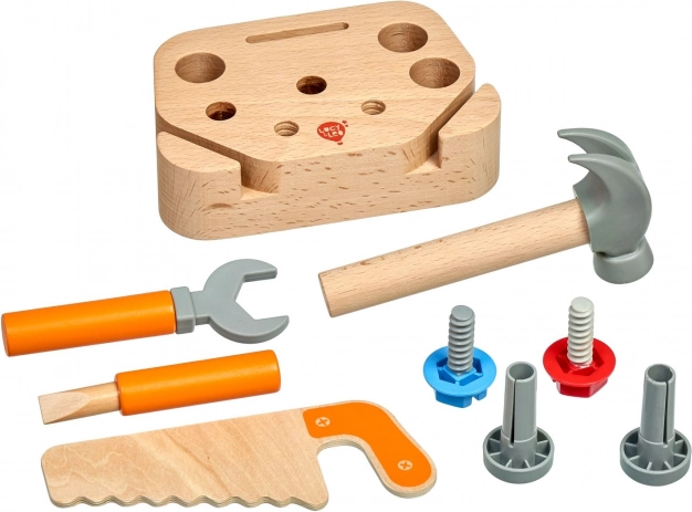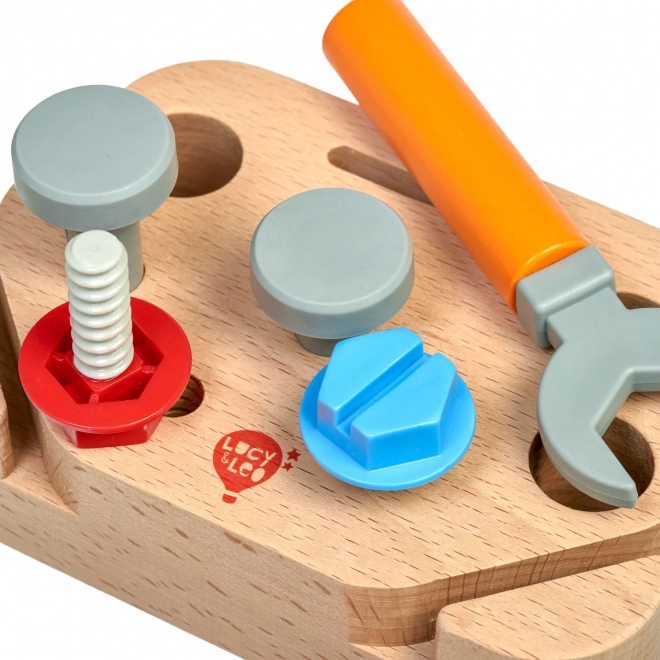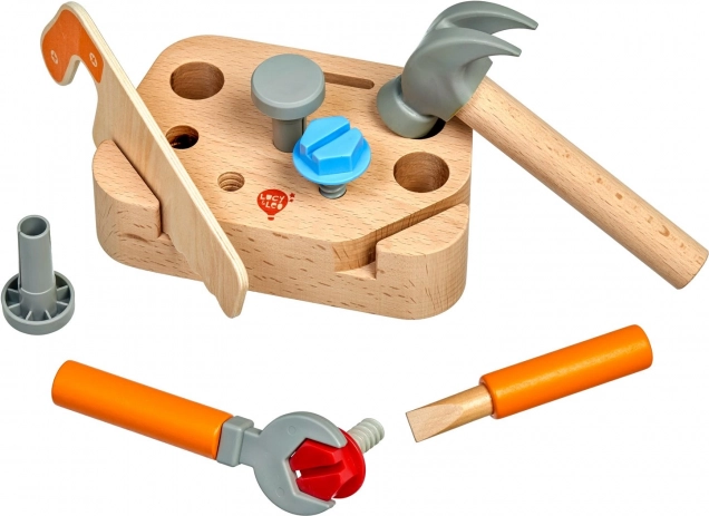 Avasta loominguline meistrimaailm laste tööriistakomplektiga Lucy & Leo „Väike tisler“. See kvaliteetne 9-osaline puidust komplekt sisaldab hoidikut ja põhitööriistu – saagi, haamrit, mutrivõtit ja kruvikeerajat – mida täiendavad kruvid ja naelad. Mänguasi on valmistatud ohutust puidust ja plastist, sileda viimistlusega, ning arendab suurepäraselt peenmotoorikat, silma–käe koordinatsiooni ja loovat mõtlemist.