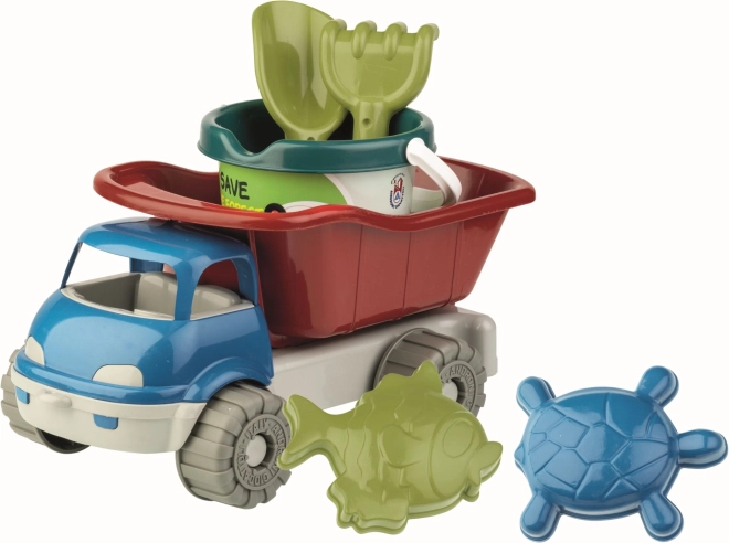 Androni liivakomplekt, mis on valmistatud taaskasutatud plastist, pakub lõbu väikestele lastele. Komplektis on auto, ämber, labidas, reha ja kaks mereteemalist vormi, ideaalne liiva või randa.