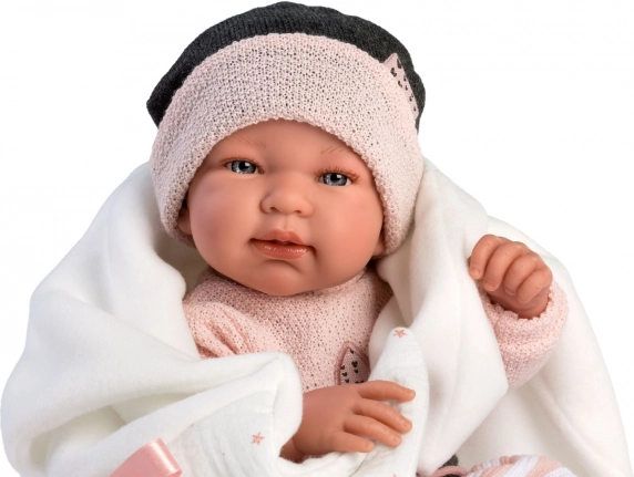 Stiilne 3-osaline LLORENS New Borni nuku riietus suurusele 43–44 cm rõõmustab realistliku välimuse ja kvaliteetse viimistlusega. Komplekt sisaldab omavahel sobitatud esemeid ja dekoratiivset tekikest – ideaalne mähkimiseks ja rollimängudeks. Valmistatud Hispaanias, pakendatud praktilise riidepuuga. Kvaliteetsed materjalid, täpne õmblus ja täiuslik lõige standardmõõdus nukkudele.