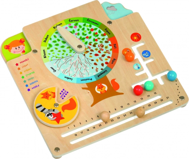 LUCY & LEO puidust looduse kalender on ideaalne vahend mänguliseks õppimiseks. Plaadi keskel on lehtpuust viljapuu koos 12 kuu näidikuga, mille abil seostavad lapsed hõlpsasti talve lumega, kevade õitega, suve viljadega ja sügise langevate lehtedega. Samal ajal õpivad lapsed tundma nädalapäevi, päevade arvu kuus, ilma, temperatuuri ja sobivat riietust erinevate olude jaoks.
